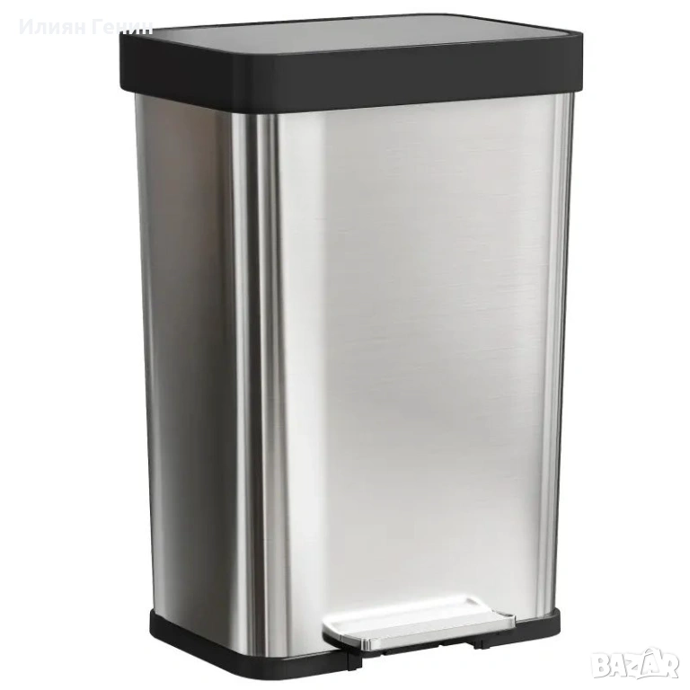 Кош за боклук HOMCOM 60 литра с педал, кош за боклук от неръждаема стомана с капак с плавно затваряне, сребрист - 70.00 €.