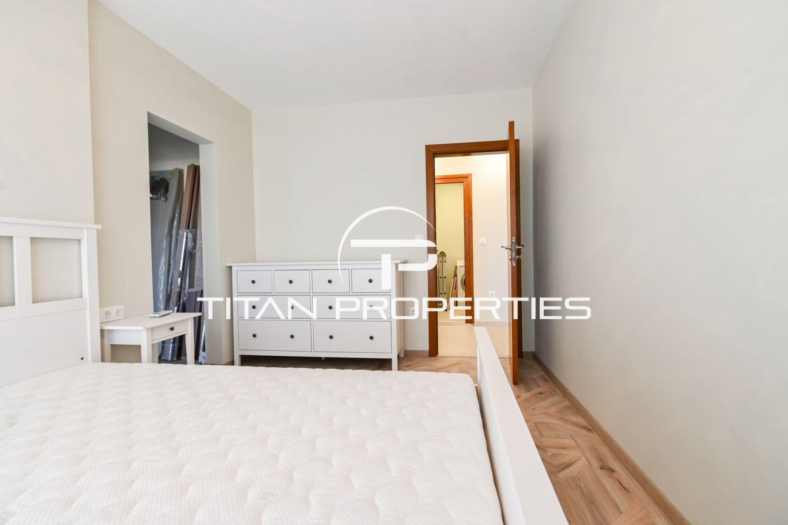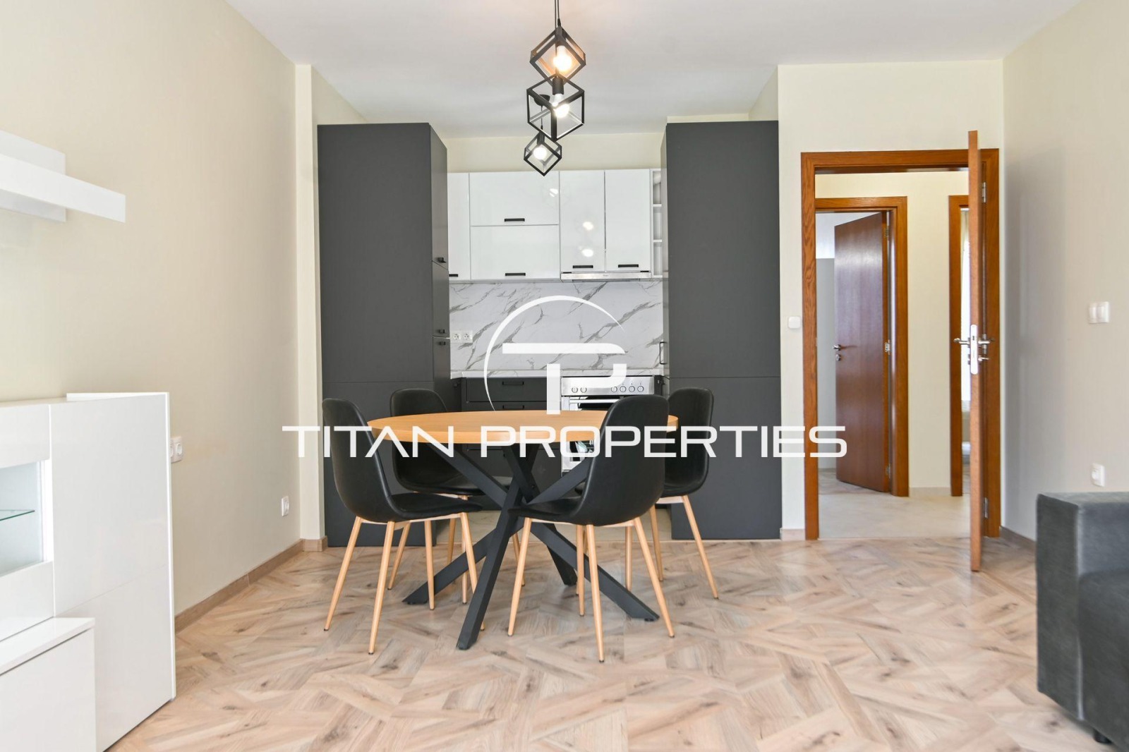 Титан Пропъртис - офис Младост с радост предлага на Вашето внимание тристаен апартамент под наем в кв. Витоша, София. Жилището с площ 93 кв.м се намира на 2-ри етаж в нова 8-етажна сграда от 2025 г. Изложението е Север/Юг. Разпределението включва входно антре, хол с кухненски бокс и трапезария, две спални, две бани, два килера и мокро помещение. Апартаментът е обзаведен и се отоплява се на ток, посредством климатици.