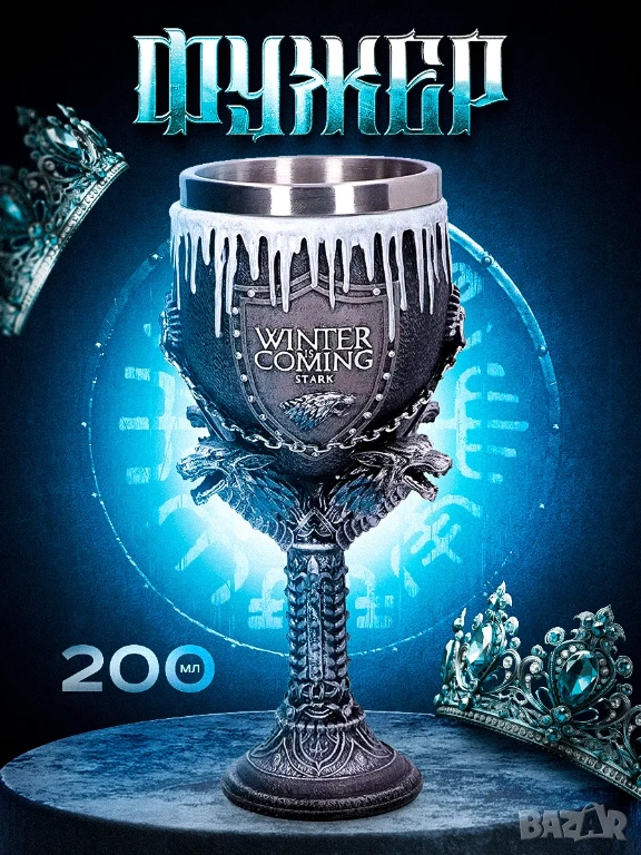 Чаша за вино, изработена от полирезин и метал → Обява 53717460