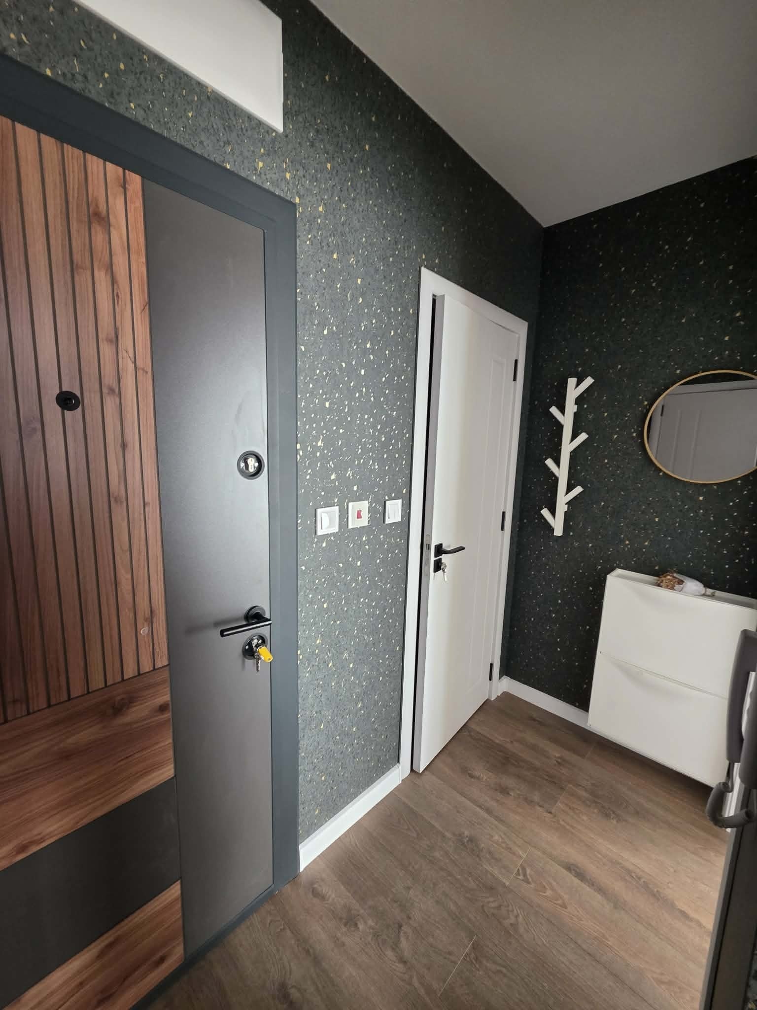 Апартаментът е чисто нов, необитаван, изпълнен в модерен стил с внимание към всеки детайл. Интериорът е решен в топли неутрални тонове, съчетани с модерни акценти и функционално разпределение, което създава усещане за комфорт и простор.