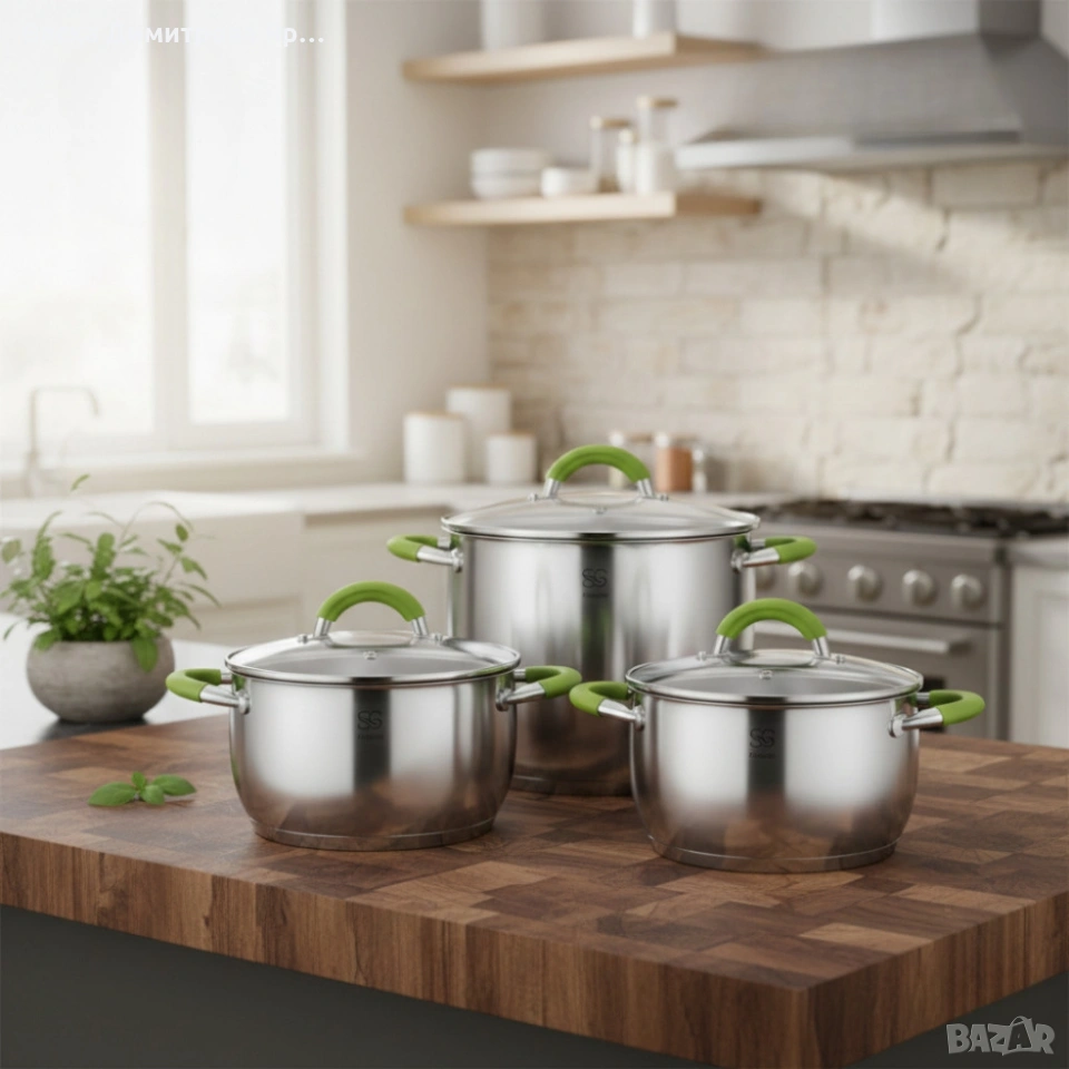 Комплект тенджери Swisgold Alana – 3 броя с капак от неръждаема стомана с 5-слойно капсулно дъно