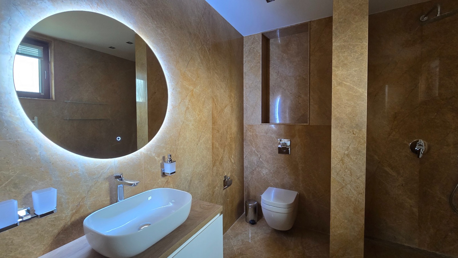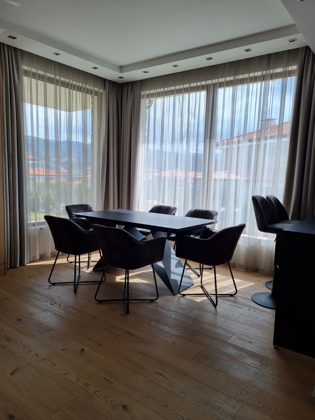 Отдава се под наем новопостроена напълно обзаведена къща от 200м2 и двор 430м2 в DELTA Hill! Къщата е с отоплителна инсталация Mitsubishi Zubadan,подово отопление,3 спални с френски паркет,3 бани(изработени от италиански мрамор),перално помещение, покрит навес за 2 автомобила,както и външно барбекю,дворно осветление и поливна система. В цената на наема е включена поддръжката на двора,охраната и интернета на къщата. За повече информация: 0888350355