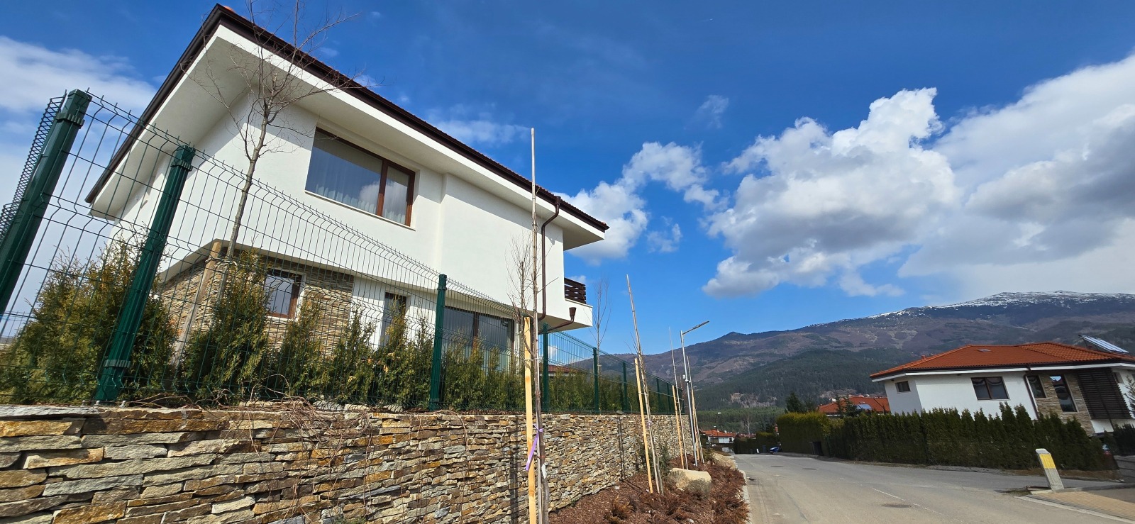 Къщата е с отоплителна инсталация Mitsubishi Zubadan,подово отопление,3 спални с френски паркет,3 бани(изработени от италиански мрамор),перално помещение, покрит навес за 2 автомобила,както и външно барбекю,дворно осветление и поливна система.