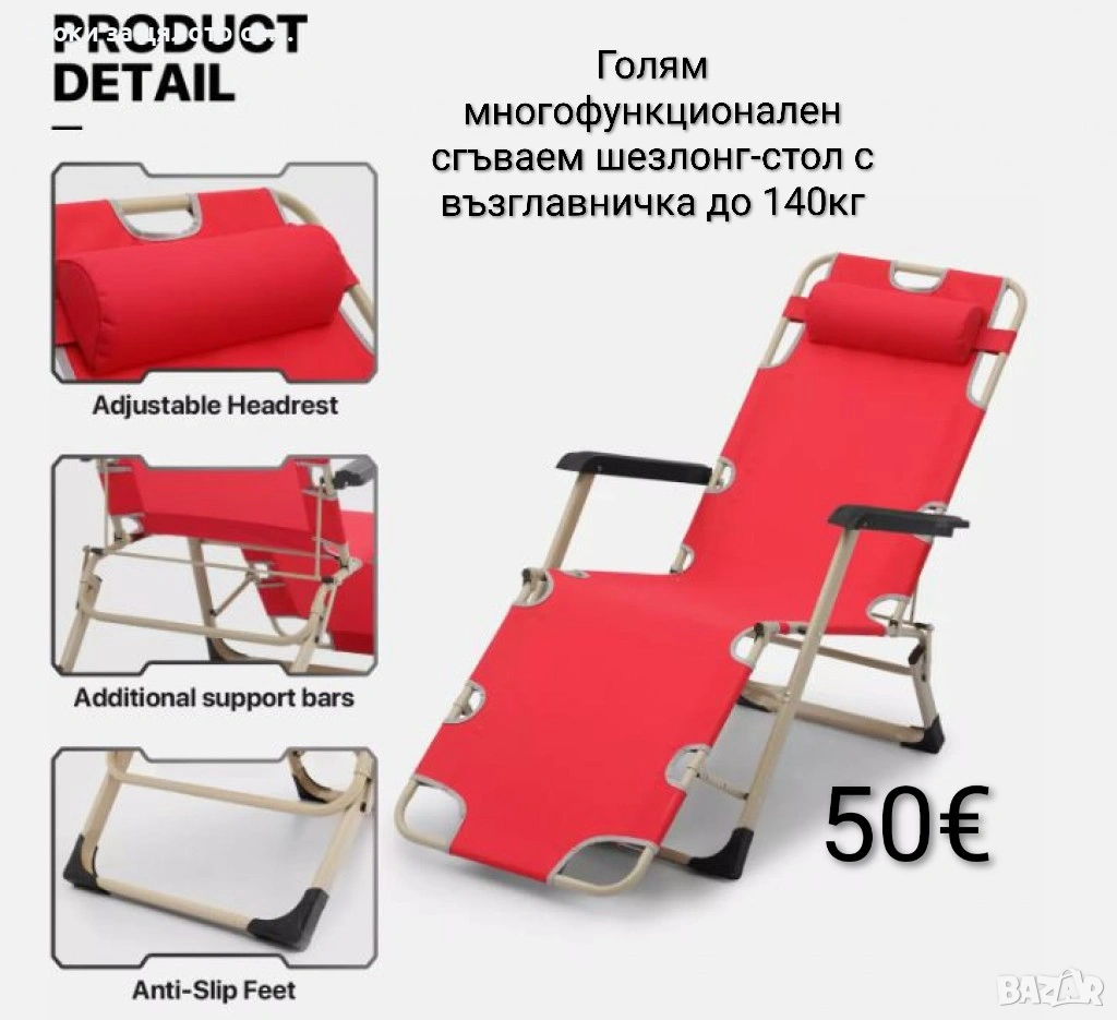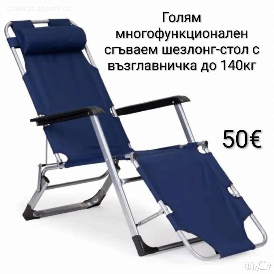 Голям многофункционален сгъваем шезлонг-стол с възглавничка до 140кг → Обява 53717640