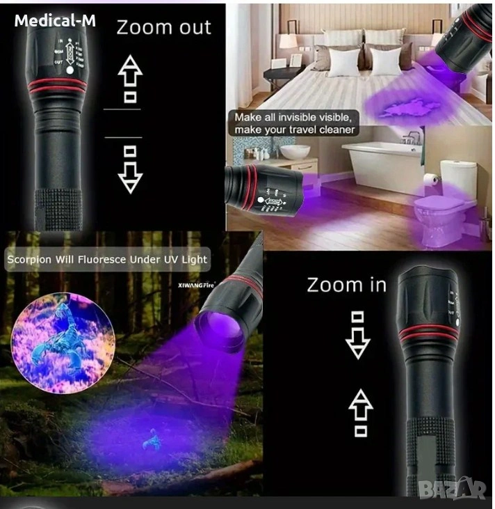 F15-T е мощно и мултифункционално устройство, което съчетава UV технология с възможности за откриване на замърсявания. Проектиран за собственици на домашни любимци и за домакинства, този фенер предлага удобен и ефективен начин за локализиране на миризми от урина, дървеници и други скрити петна по повърхностите.