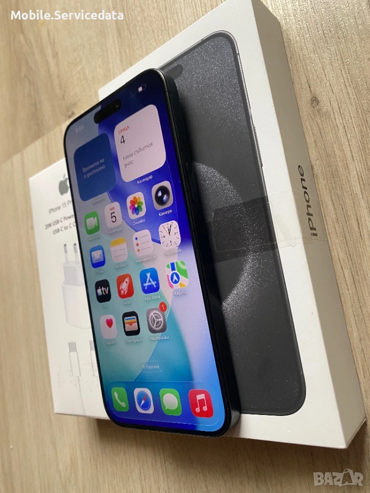 iPhone 15 Pro Max 1TB Черен – кутия + ново оригинално зарядно и адаптер