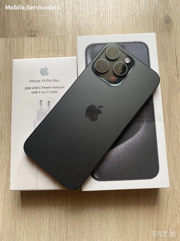 iPhone 15 Pro Max 1TB Черен – кутия + ново оригинално зарядно и адаптер → Обява 53718067