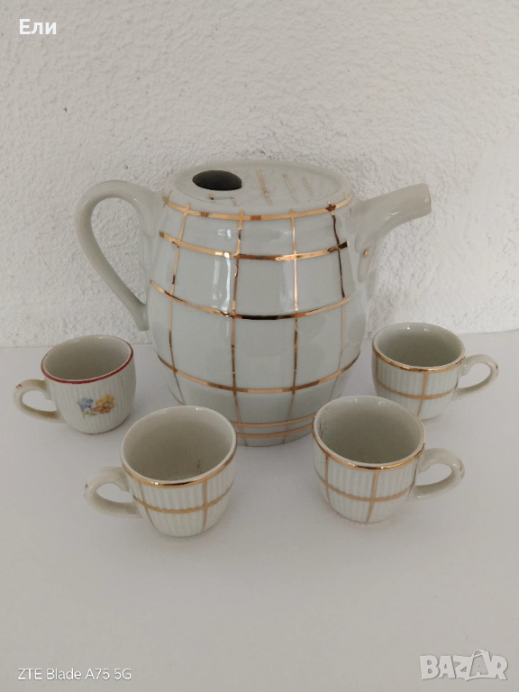 Сервиз старинен за греяна ракия.Порцелан. → Обява 53718161