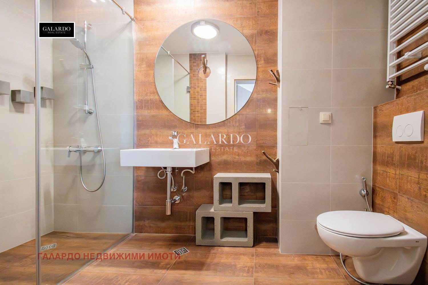 Апартаментът се намира в малка бутикова сграда с модерна архитектура и отлично поддържани общи части. Изпълнението включва вентилируема фасада и алуминиева дограма Sch?co, осигуряващи висока енергийна ефективност и комфорт на обитаване.