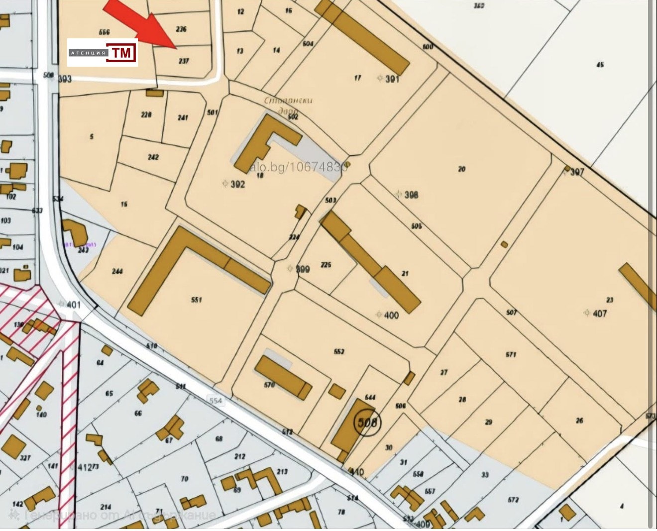 Парцелите са два 912кв + 1043кв , продават се заедно.