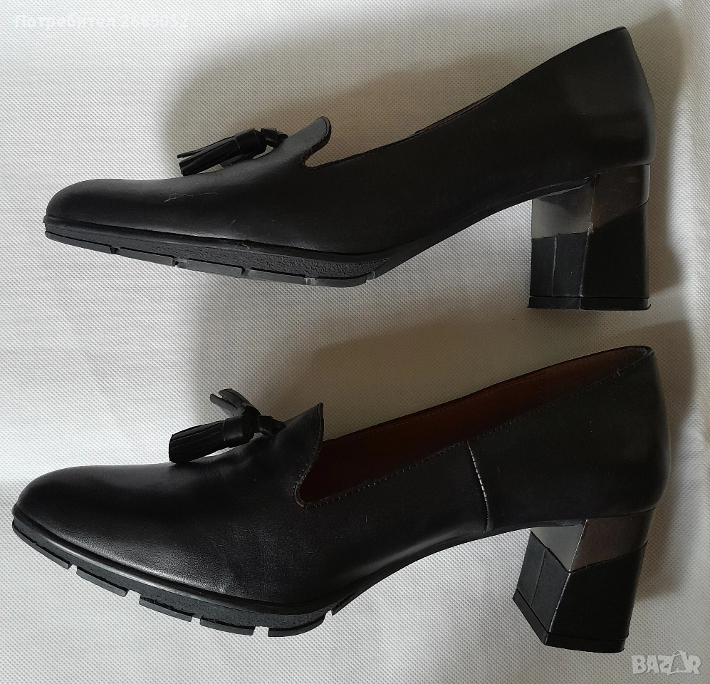 Дамски обувки от естествена кожа Modabella.Произведени в Испания.Черен цвят.Размер 37, дължина на стелката 24 см.Височина на тока 6 см.Отлично състояние.