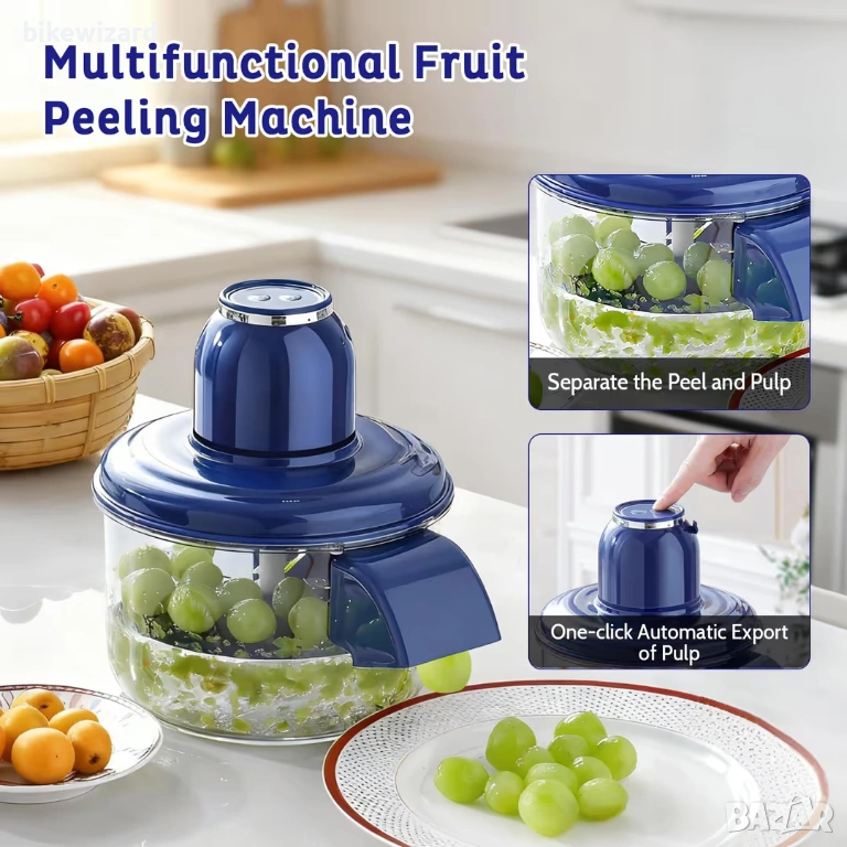Изработена от неръждаема стомана 304 и висококачествена ABS пластмаса, устойчива на ръжда, безопасна и издръжлива, тя ви доставя готови за консумация обелени плодове с едно натискане на бутон. Бързо белене - Белачката е оборудвана с мощен 50W мотор и вградена литиева батерия 1300mAh и достига висока скорост от 1300 оборота в минута. Тя премахва корите на плодове като грозде и череши за секунди, което я прави идеална както за домашна употреба в кухнята, така и за търговска употреба. Иновативен дизайн на контурираното острие - Белачката за грозде е с вдлъбнат дизайн с пет остриета, като пет висококачествени остриета от неръждаема стомана са вдлъбнати в основата на устройството. Тънките и остри като бръснач остриета се обелват равномерно и гладко, като премахват само кората, без да увреждат пулпата, запазвайки повече витамини. Лесна за употреба - Устройството има два бутона, които ви позволяват да изберете белене или изхвърляне на пулпата с едно натискане. С натискане на бутона обелената пулпа се изхвърля автоматично, така че не е необходимо ръчно отстраняване. Безжичният му дизайн го прави идеален за употреба в кухнята или при къмпингуване на открито. Широко приложение: тази многофункционална белачка бързо премахва обелките на грозде, череши и чери домати и е подходяща и за чесън, картофи и други малки плодове и зеленчуци. След употреба компонентите ѝ могат бързо да се разглобят, за да се почистят старателно, което я прави изключително практична.