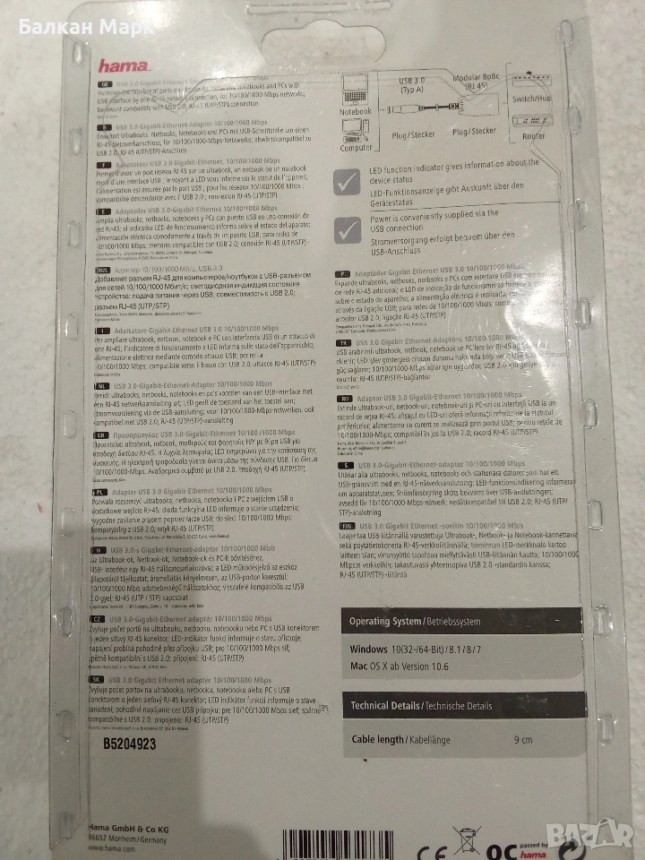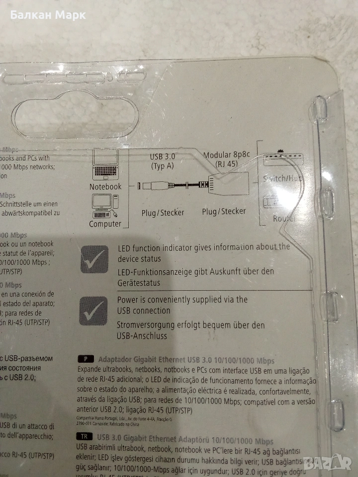 Gigabit Ethernet Адаптер HAMA (USB 3.0 към LAN)10/100/1000Mbps, снимка 1 - Мрежови адаптери - 53718336 Gigabit Ethernet Адаптер HAMA (USB 3.0 към LAN)10/100/1000Mbps, снимка 2 - Мрежови адаптери - 53718336 Gigabit Ethernet Адаптер HAMA (USB 3.0 към LAN)10/100/1000Mbps, снимка 3 - Мрежови адаптери - 53718336 1/3