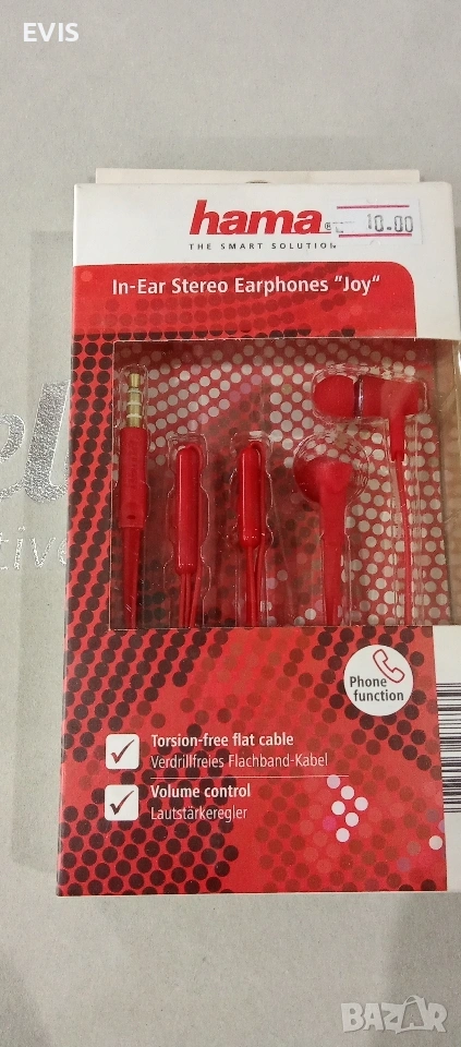 🎧 Нови стерео слушалки Hama – Стил, Качество и Кристален звук! Продавам чисто нови, неизползвани слушалки тип "in-ear" на утвърдената немска марка Hama. Идеални за музика, разговори и ежедневно ползване със смартфон, таблет или лаптоп. ✅ Налични модели и цветове: Hama "Joy" (Червени) – Енергичен дизайн Екстри: Плосък кабел против заплитане (Torsion-free). Функции: Вграден микрофон за разговори и управление на силата на звука. Специфично: Ергономична форма за максимален комфорт. Hama "Joy" (Сини & Бели) – Елегантни и практични Функции: Пълна съвместимост със смартфони, вграден микрофон за hands-free разговори. Послание: "Headphones on. World off." – страхотна изолация на околния шум. Hama "Basic4Music" (Черни) – Класика за аудиофили Фокус: Балансиран звук, оптимизиран специално за слушане на музика. Дизайн: Изчистен черен цвят, подходящ за всеки стил. ✨ Защо да изберете тези слушалки? Марка: Hama – немско качество на достъпна цена. Комфорт: Силиконови тапи, които пасват идеално в ухото. Универсалност: Стандартен 3.5 мм жак, съвместим с почти всички устройства. Състояние: Чисто нови в оригинална опаковка.
