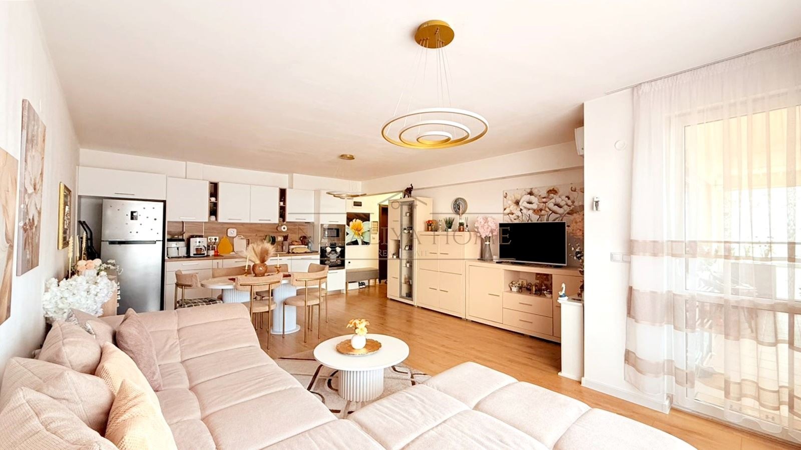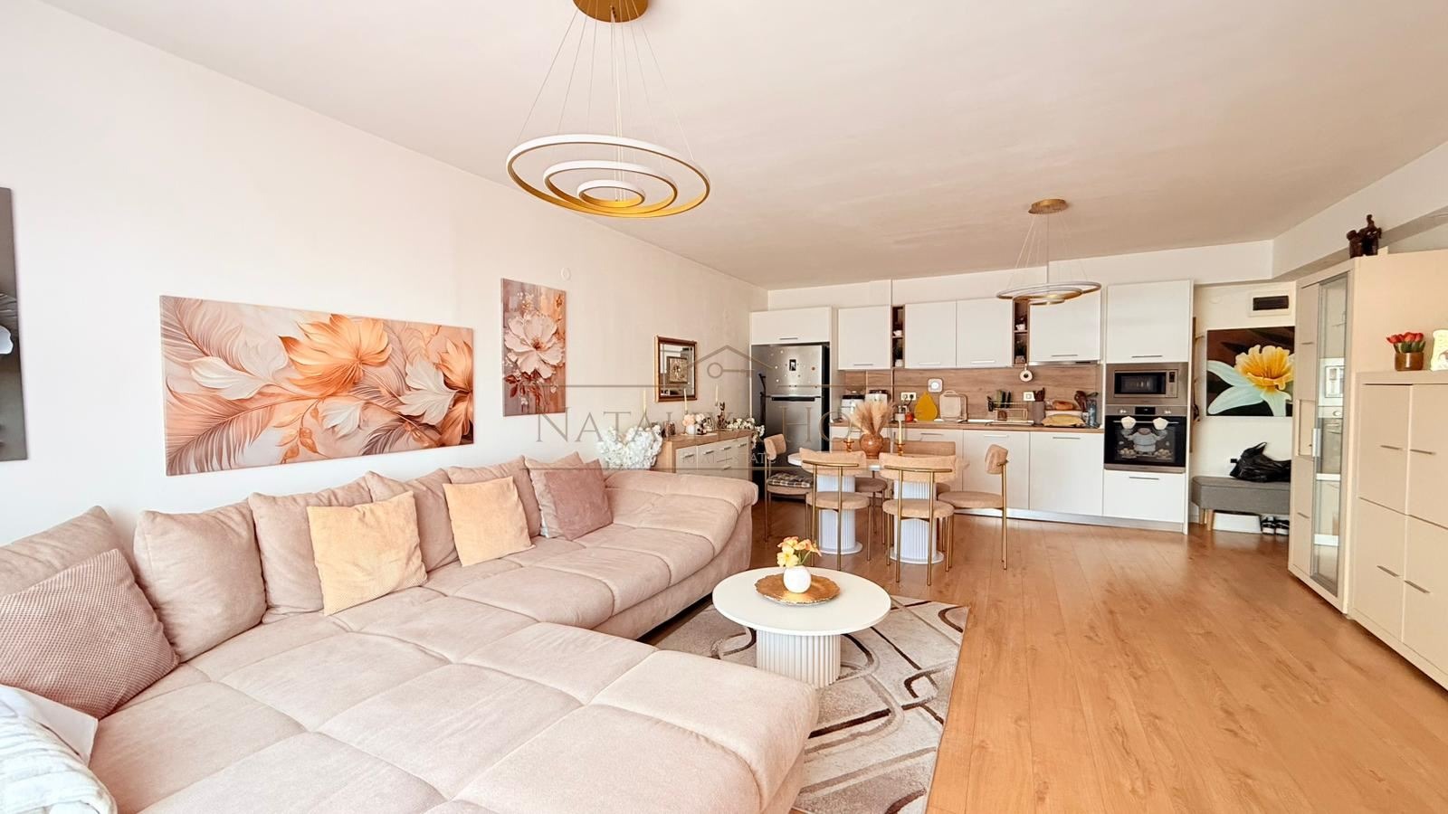 Жилището впечатлява с удобно разпределение - широка всекидневна с кухня и трапезария, комфортна спалня, баня, WC и просторна тераса. Апартаментът е освежен, продава се напълно обзаведен и оборудван. Жилището е със западно изложение.