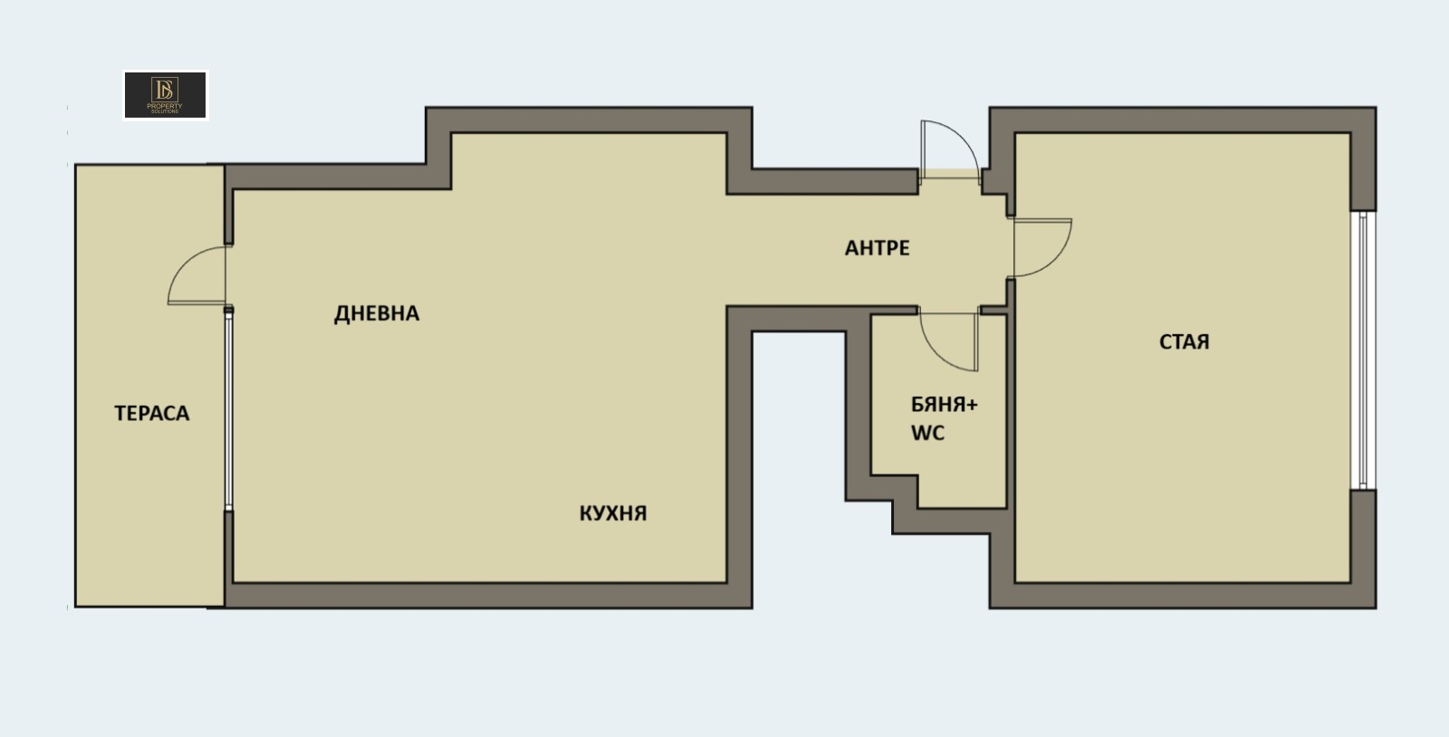 Жилището е със застроена площ по документ за собственост от 60 кв.м. и следното разпределение: коридор, дневна с кухненски бокс, стая, санитарен възел и голяма тераса с барбекю-зона. Отоплението е на ток, посредством висок клас инверторни климатици, като за почитателите на домашния уют има и монтирана напълно функционираща камина на дърва.