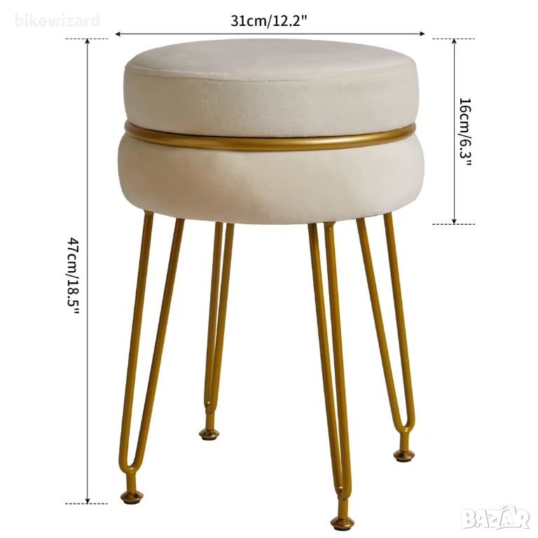 Висококачествен материал: Обвита в луксозно кадифе и е оборудвана с вътрешни възглавници, осигурявайки ви максимален комфорт. Здравата основа има четири метални крака и е декорирана със златно прахово покритие за стабилност и естетика. Тази табуретка ще бъде идеалният избор за вас у дома. Подходящ размер и модерен външен вид: Общият размер е 31 (дълбочина) x 47 (височина) сантиметра. Компактният дизайн е идеален за малки пространства. Страната на табуретката е декорирана с метални декорации, което е практично и красиво. Модерният стил е подходящ за всяко семейство, хол, спалня, офис, модерен гардероб, кабинет и апартамент. Многофункционална употреба: Елегантният дизайн е идеален за гримьорни и домашен декор. Тази табуретка може да се използва като табуретка на дивана и нощното шкафче, удобна седалка пред тоалетката или допълнителна седалка за гости. Можете също така да поставите подноси, книги, закуски и други. Идеална е за тоалетки, дневни, входове, офиси или общежития. Регулируеми крачета: 4-футовите (приблизително 1,8 сантиметра) на табуретката могат да се завъртат, за да се регулира височината ѝ, за да се избегне накланяне на седалката поради неравен терен. Тази табуретка се предлага и с фрикционни подложки, за да се предотвратят надрасквания по пода, и е лесна за преместване. Лесен монтаж: Според ръководството (не е задължително да е на китайски), трябва да се сглобят само 4-футови табуретки. Ако имате въпроси, ще ви помогнем да ги разрешите своевременно. Поради проблеми с осветлението при снимане; Всеки монитор има различна резолюция и настройки, което може да причини известна разлика в цветовете.
