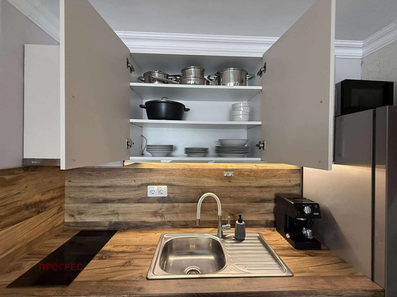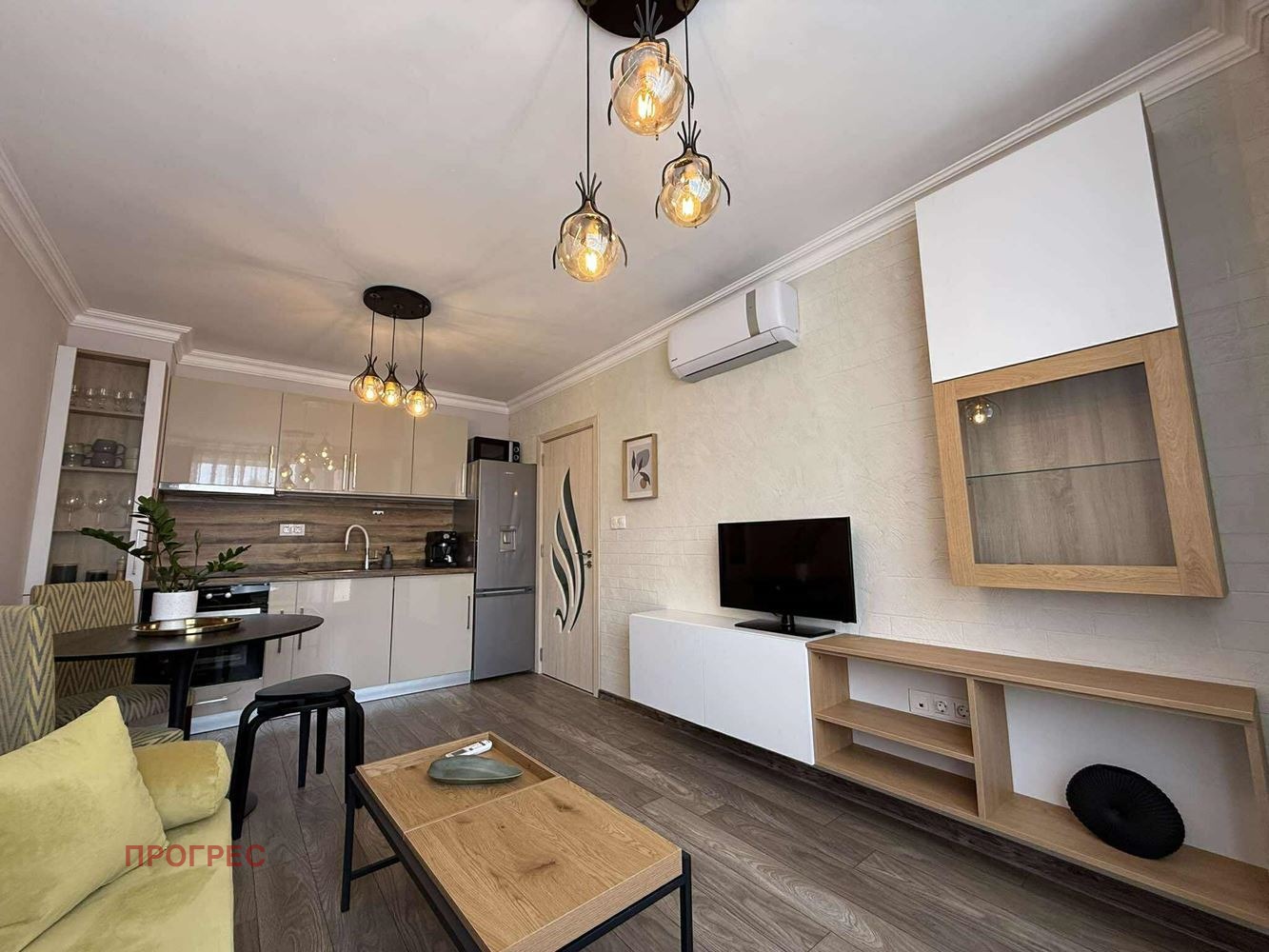 Апартаментът се отдава напълно обзаведен с нови мебели и електроуреди. Всичко е подбрано с внимание към детайла за максимален комфорт на бъдещите наематели.