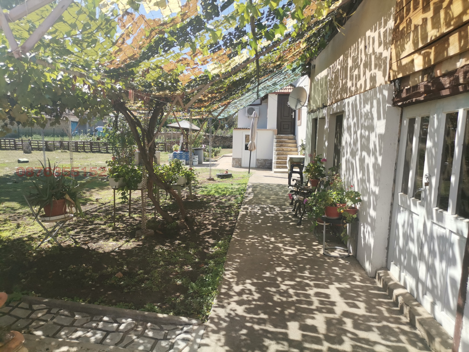 Изцяло подменени тръби за водата в цялата къща, външна чешма, външна тоалетна, две масивни отделни постройки, подходящи както за работилница, така и за изграждане на барбекю зона. Двора е целогодишно поддържан, като е разделен с дървена ограда - зона за сеитба на зеленчуци и релакс зона с райграс, езеро с водни лилий, бананови палми. Подменена е част от оградата с поцинковани пана. Имота има и изградено видео наблюдение.