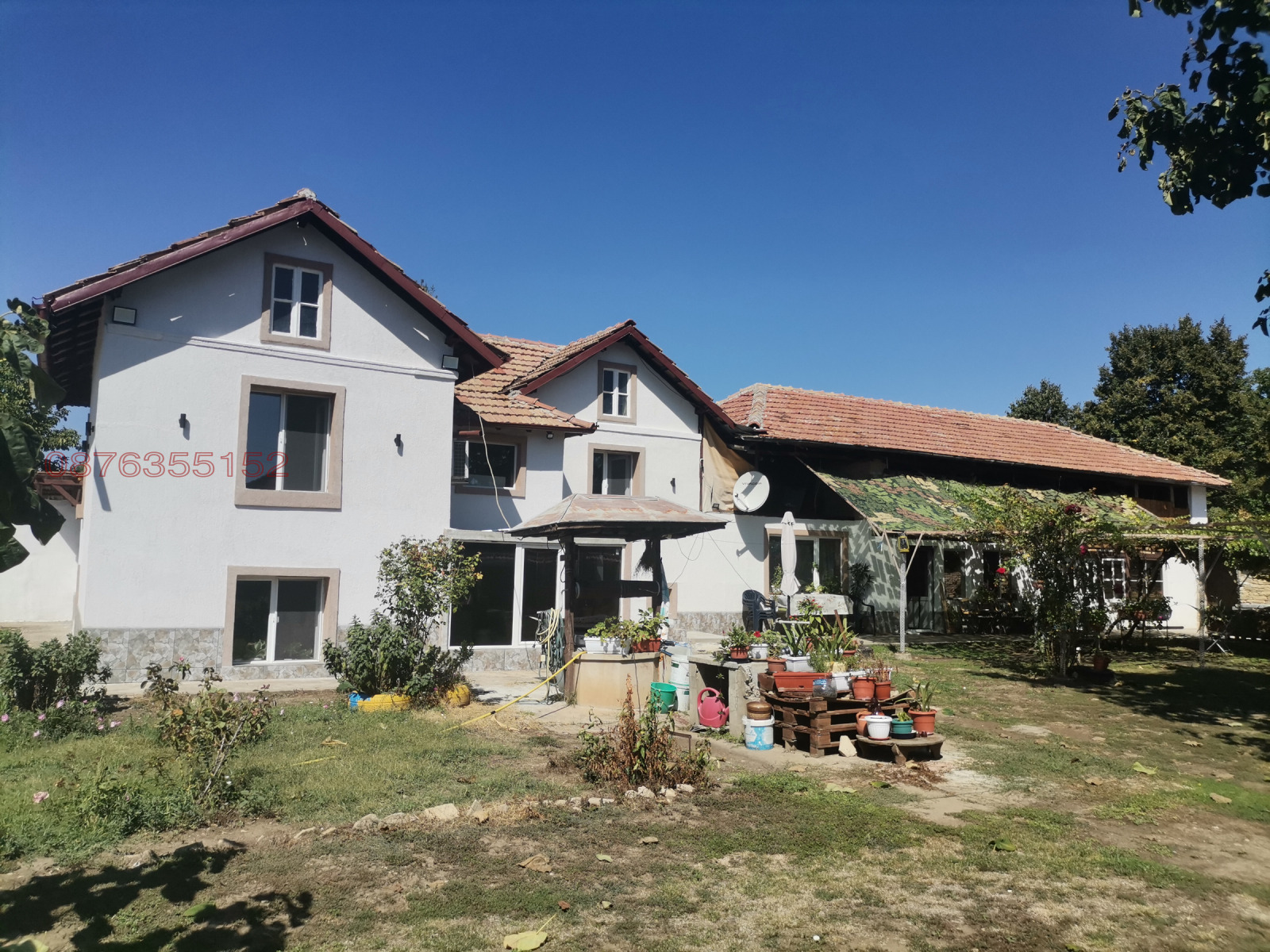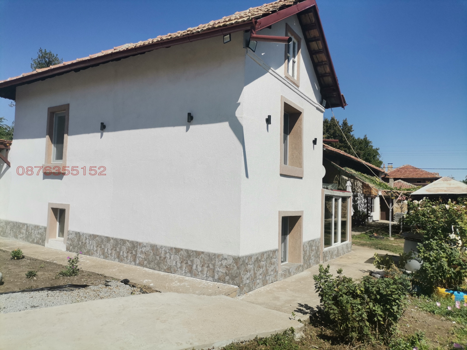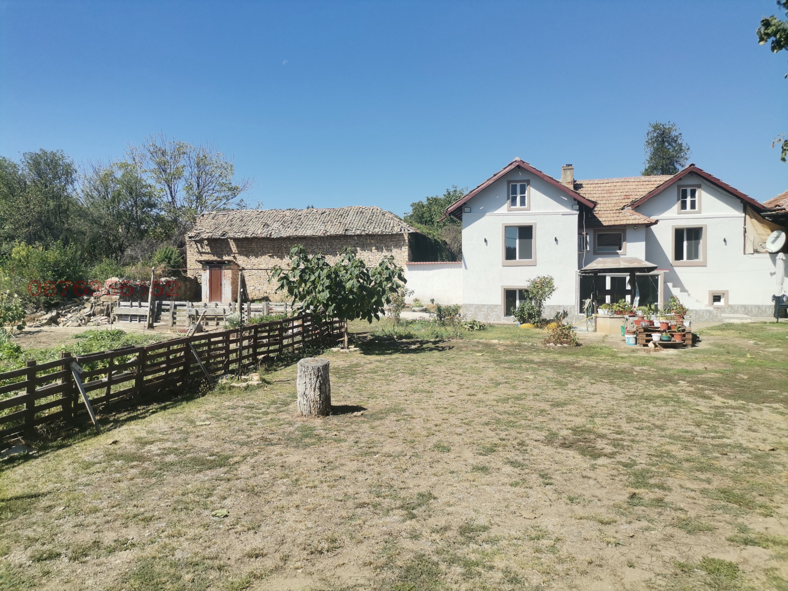 Кладенец с изградена хидрофорна система захранваща цялата къща и двора. Здрав каменен дувар с подменени чисто нови цигли Bramac. Два гаража и надгаражно пространство с възможност за изграждане на още една стая.