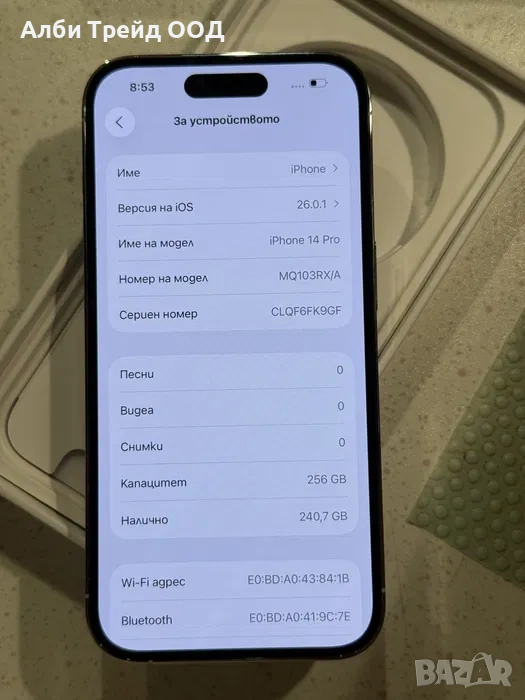iPhone 14 Pro 256GB Silver (Бял) - 86% Батерия, Като НОВ. → Обява 53719253