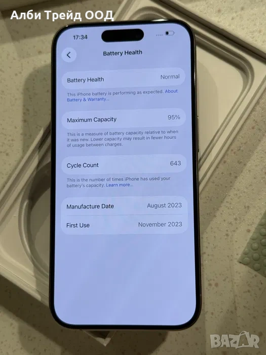 iPhone 15 Pro 128GB Natural Titanium – Като НОВ, 95% Батерия., снимка 1 - Apple iPhone - 53719322 iPhone 15 Pro 128GB Natural Titanium – Като НОВ, 95% Батерия., снимка 2 - Apple iPhone - 53719322 iPhone 15 Pro 128GB Natural Titanium – Като НОВ, 95% Батерия., снимка 3 - Apple iPhone - 53719322 iPhone 15 Pro 128GB Natural Titanium – Като НОВ, 95% Батерия., снимка 4 - Apple iPhone - 53719322 iPhone 15 Pro 128GB Natural Titanium – Като НОВ, 95% Батерия., снимка 5 - Apple iPhone - 53719322 iPhone 15 Pro 128GB Natural Titanium – Като НОВ, 95% Батерия., снимка 6 - Apple iPhone - 53719322 iPhone 15 Pro 128GB Natural Titanium – Като НОВ, 95% Батерия., снимка 7 - Apple iPhone - 53719322 1/7
