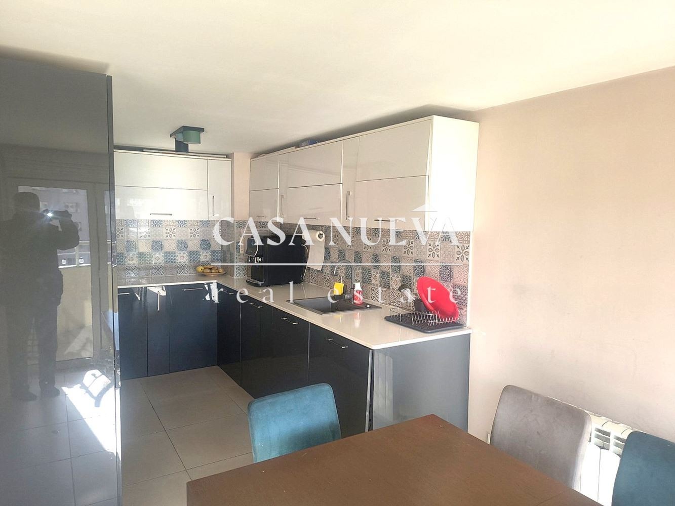 CASA NUEVA REAL ESTATE продава тристаен апартамент в гр.Перник, кв.Изток. Разположен на пети етаж от четиринадесет в сграда (ЕПК) от 1986 година. Апартаментът е с площ от 97,87 кв.м. и се състои от кухня с трапезария, всекидневна, две спални, баня с тоалетна и две тераси. Той е луксозно обзаведен и се продава във вида, в който е показан на снимките. Отоплението е на ТЕЦ. Блокът е изцяло саниран и разполага с два асансьора. Към жилището има мазе.