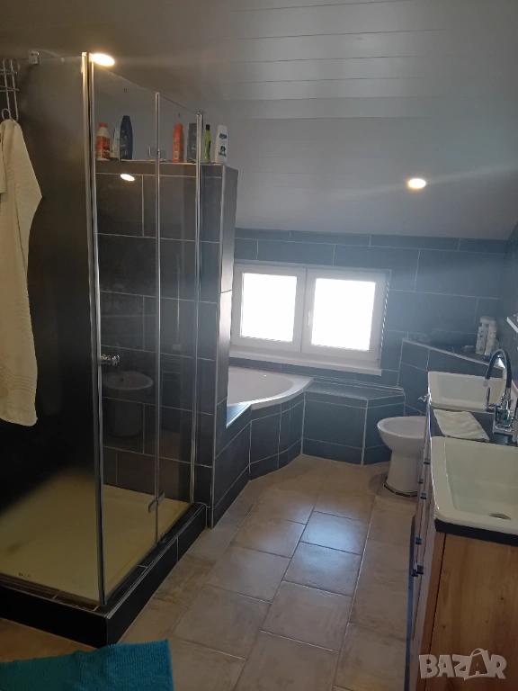 ✅✨Луксозна баня с ъглова вана, душ, биде, двойна мивка и окачена тоалетна
