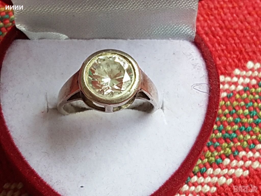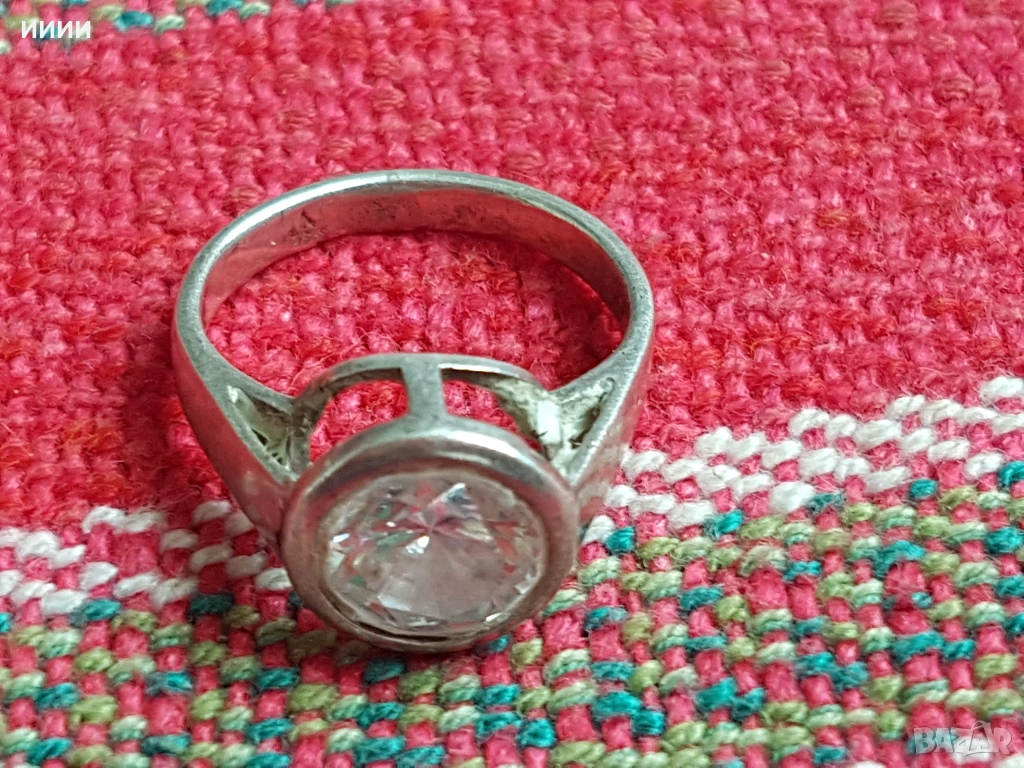 Сребърен пръстен с прозрачен камък → Обява 53719378