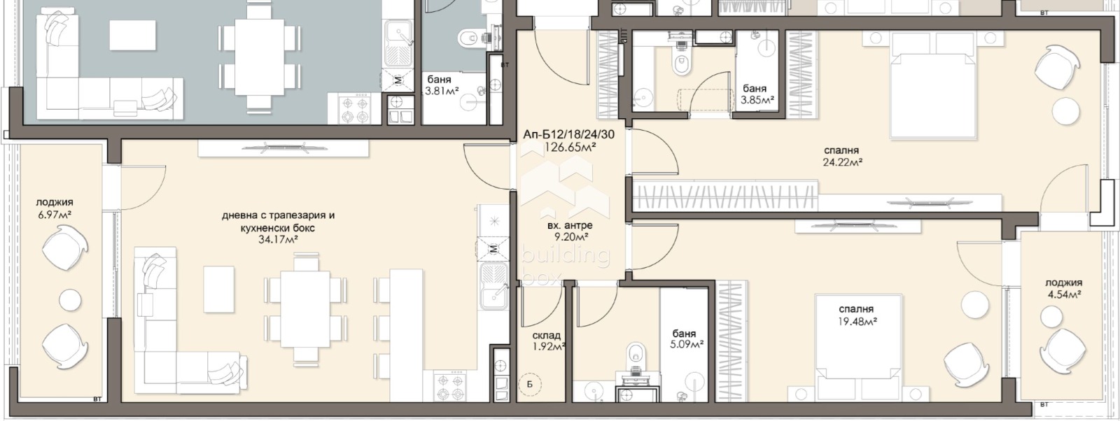 БИЛДИНГ БОКС представя сграда, която се отличава с просторни жилища с перфектно разпределение, нисък процент общи части и високо качество на строителството, изпълнено от опитни професионалисти, които осигуряват сигурност и комфорт за бъдещите обитатели.
