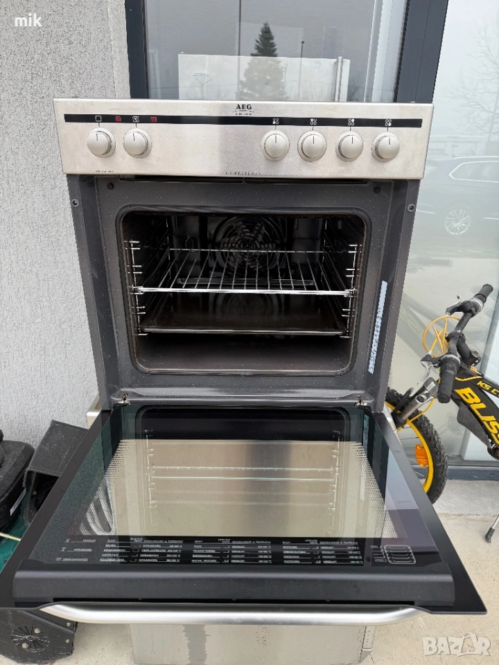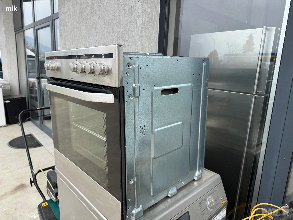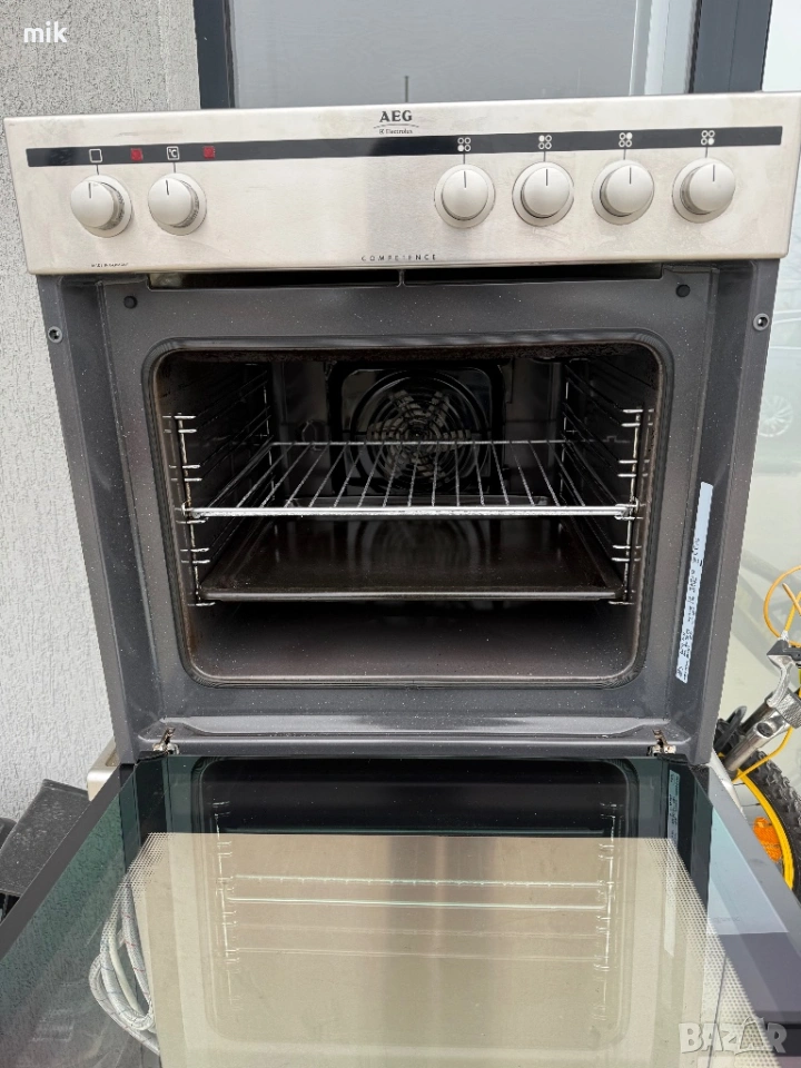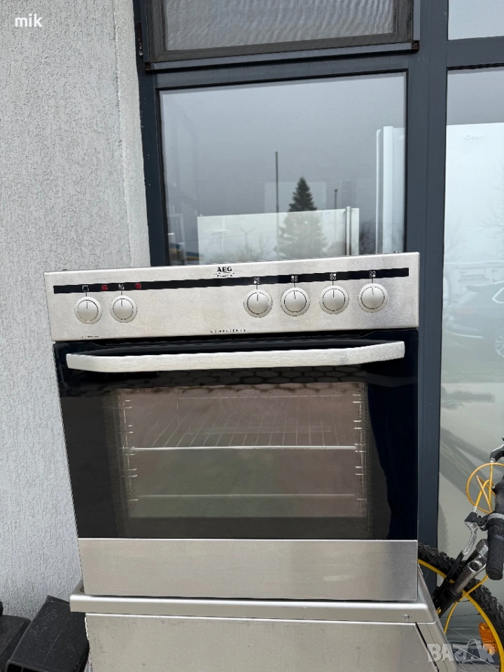 Фурна за вграждане AEG - Инокс. С 4ка керамичен плот. Много запазен външен вид. Закупени от Германия, произведени за немския пазар. Дезинфекцирана и готова за употреба. Фурната е с вентилатор. Печката е с Пуш-бутони. Оборудвана с оригинална скара и тава.