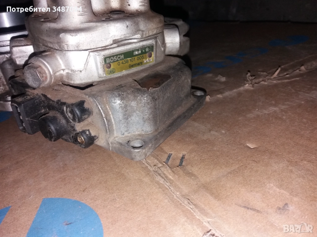 Дебитомер "Bosch" с №№ 0438101005 и 0438121011 със следи от употреба, част от горивната система на бензинов двигател.