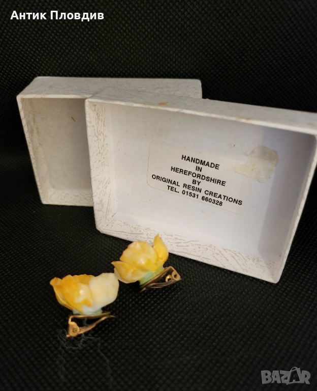Оригинална кутия с етикет „Handmade in Herefordshire by Original Resin Creations“.