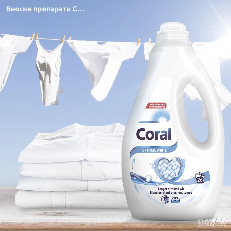 Изберете Coral Optimal White – професионална грижа за бели тъкани във всяка капка. Насладете на безупречно чисто пране всеки ден.