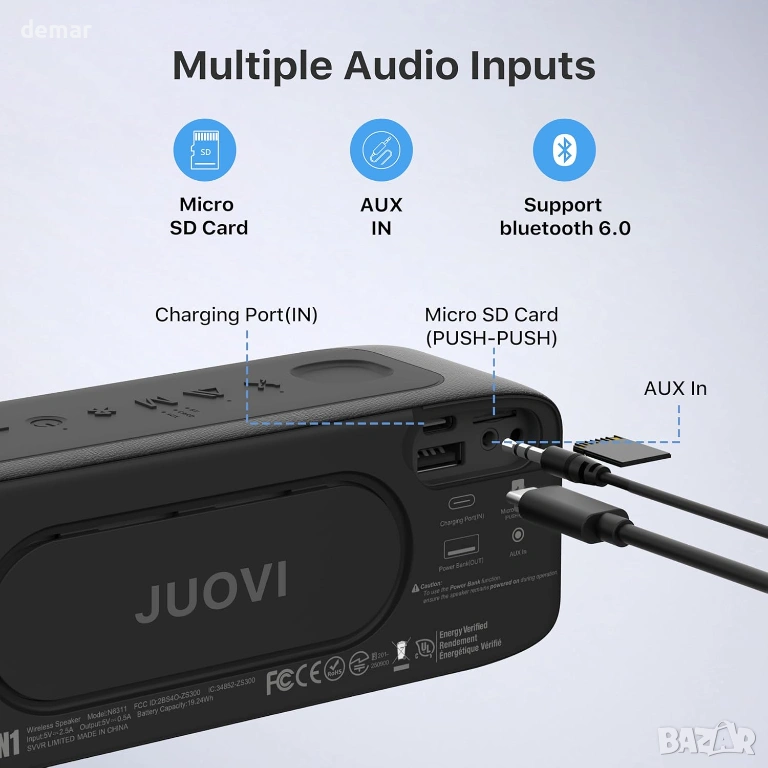 Преносим Bluetooth високоговорител, осигуряващ мощен и ясен звук чрез двойни драйвери, които поддържат стабилно аудио дори при по-висока сила на звука, което го прави подходящ за музика, подкасти, аудиокниги и филми. Оборудван с Bluetooth 6.0 за подобрена стабилност на връзката и по-голяма устойчивост на смущения в претъпкана среда с устройства. Осигурява до 24 часа време за възпроизвеждане с едно зареждане и е с издръжлив водоустойчив рейтинг IP68, подходящ за употреба под душа, край басейна, на плажа или по време на дейности на открито, като туризъм и къмпинг. Включва вграден микрофон за разговори със свободни ръце и активиране на гласов асистент. Поддържа множество опции за възпроизвеждане, включително Bluetooth, AUX вход и възпроизвеждане на MicroSD MP3. TWS сдвояването позволява безжично свързване на два високоговорителя за подобрен стерео звук и по-широко слушателско изживяване.