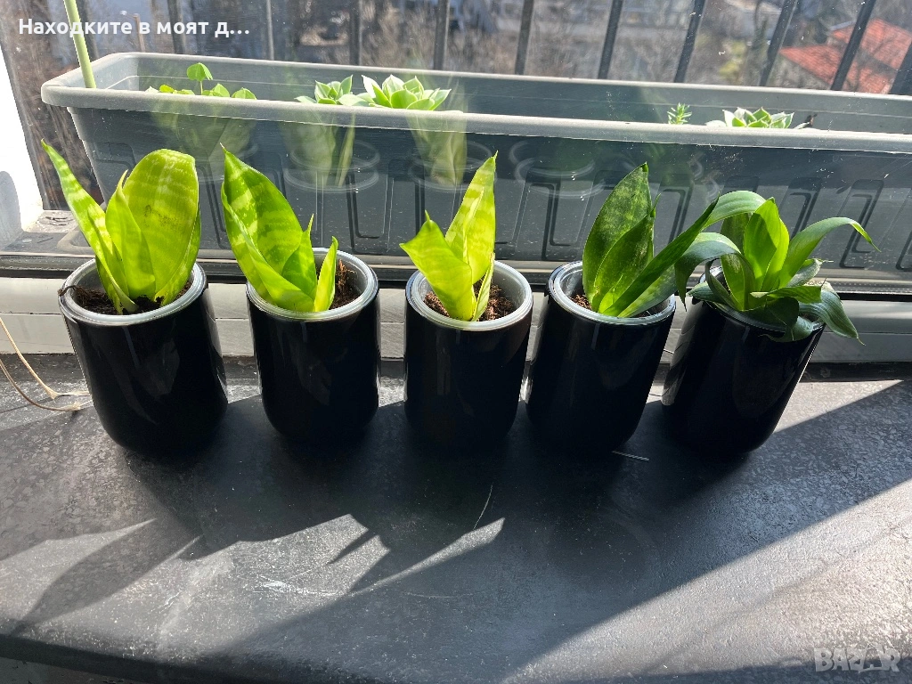 Цена 5 евро за 1 брой сенсевиера в керамична кашпа черна или кафява по избор.