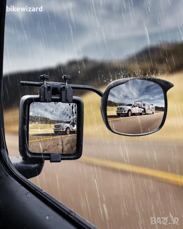Удължители за странични огледала за каравани Универсални огледала за теглене – изпъкнали с дефлектор за дъжд 1 чифт