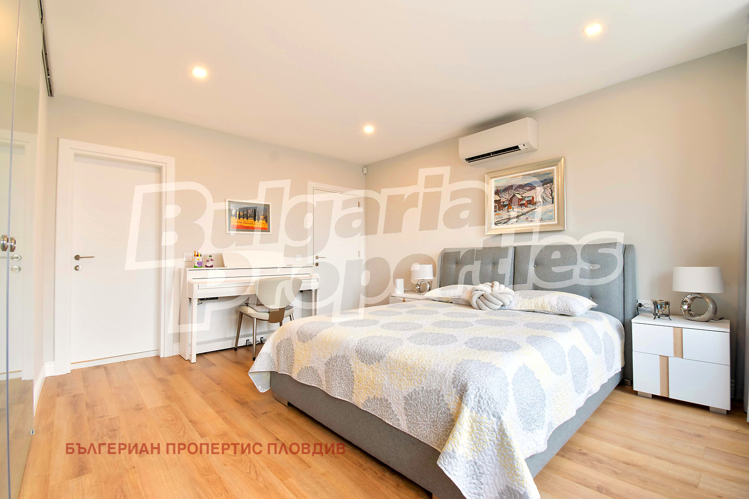 Апартаментът е напълно климатизиран, довършителните работи са изпълнени с висок клас материали, а интериорните врати и детайлите подчертават усещането за завършен премиум дом.