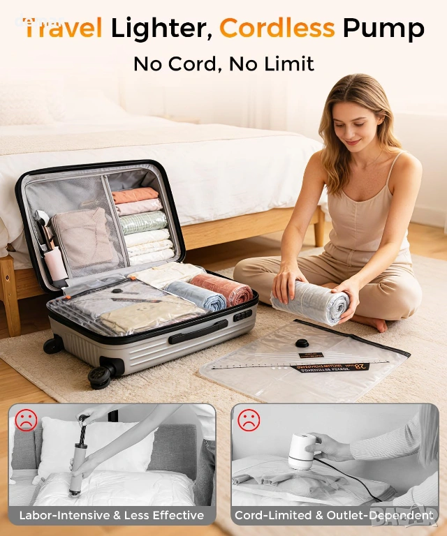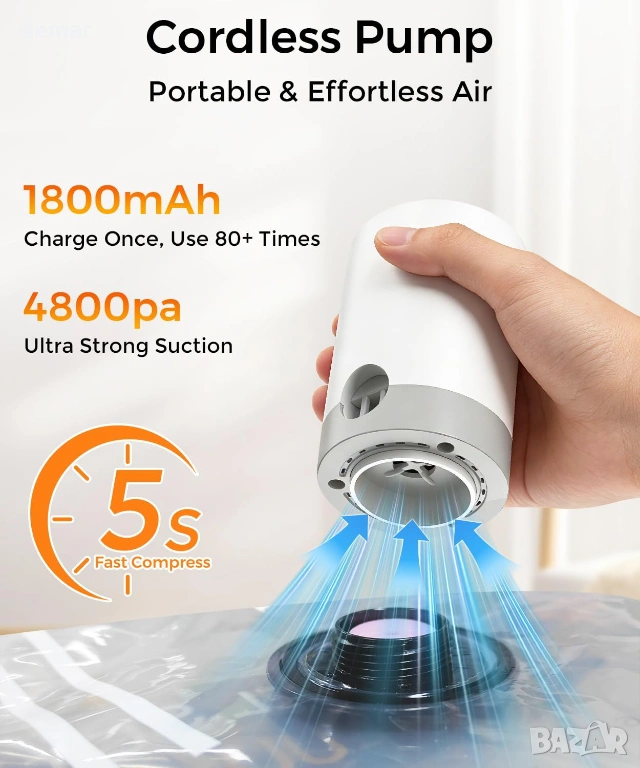 Вакуумни торбички за съхранение за пътуване с акумулаторна безжична помпа, 12 броя 4S/4M/4L