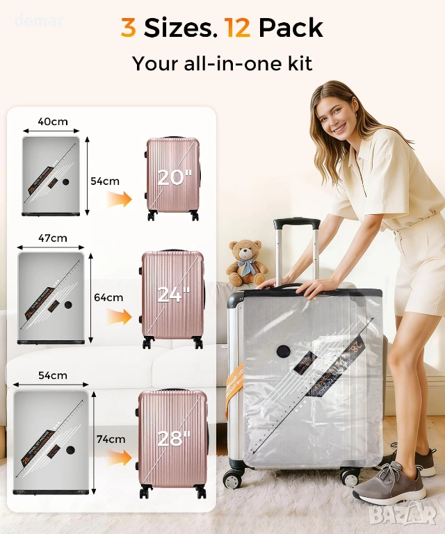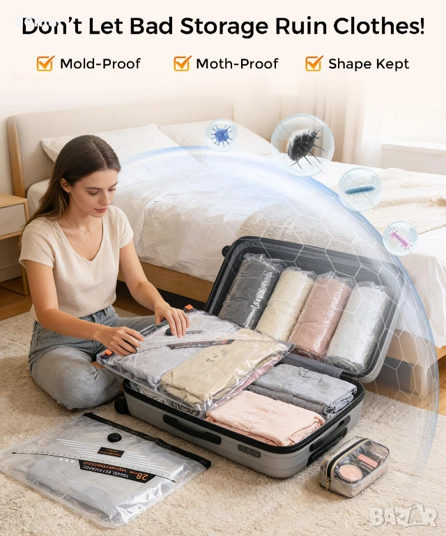 Захранвани от вградена акумулаторна помпа с капацитет 1800 mAh, осигуряваща силно засмукване за бързо отстраняване на въздуха, тези вакуумни торбички за многократна употреба компресират дрехи и меки предмети с до 90%, за да увеличат максимално багажното пространство. Изработени от издръжлив, устойчив на разкъсване PE и PA материал, те се отличават с удебелена конструкция, тройно запечатващ се цип и усъвършенстван турбо клапан, за да поддържат херметично и непропускливо уплътнение и да предотвратяват повторно напомпване. Комплектът включва 12 торбички в три практични размера, подходящи за дрехи, спално бельо и сезонни артикули, предлагайки гъвкаво съхранение както за организиране на дома, така и за пътуване. Лека, компактна електрическа помпа с Type-C зареждане осигурява удобно пренасяне, което прави системата идеална за ефективно опаковане и организирано управление на багажа.