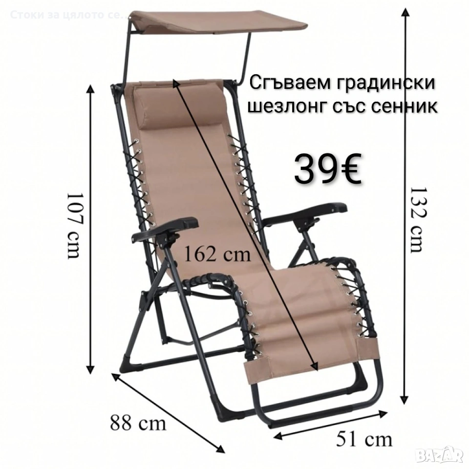 Сгъваем градински шезлонг със сенник → Обява 53720282