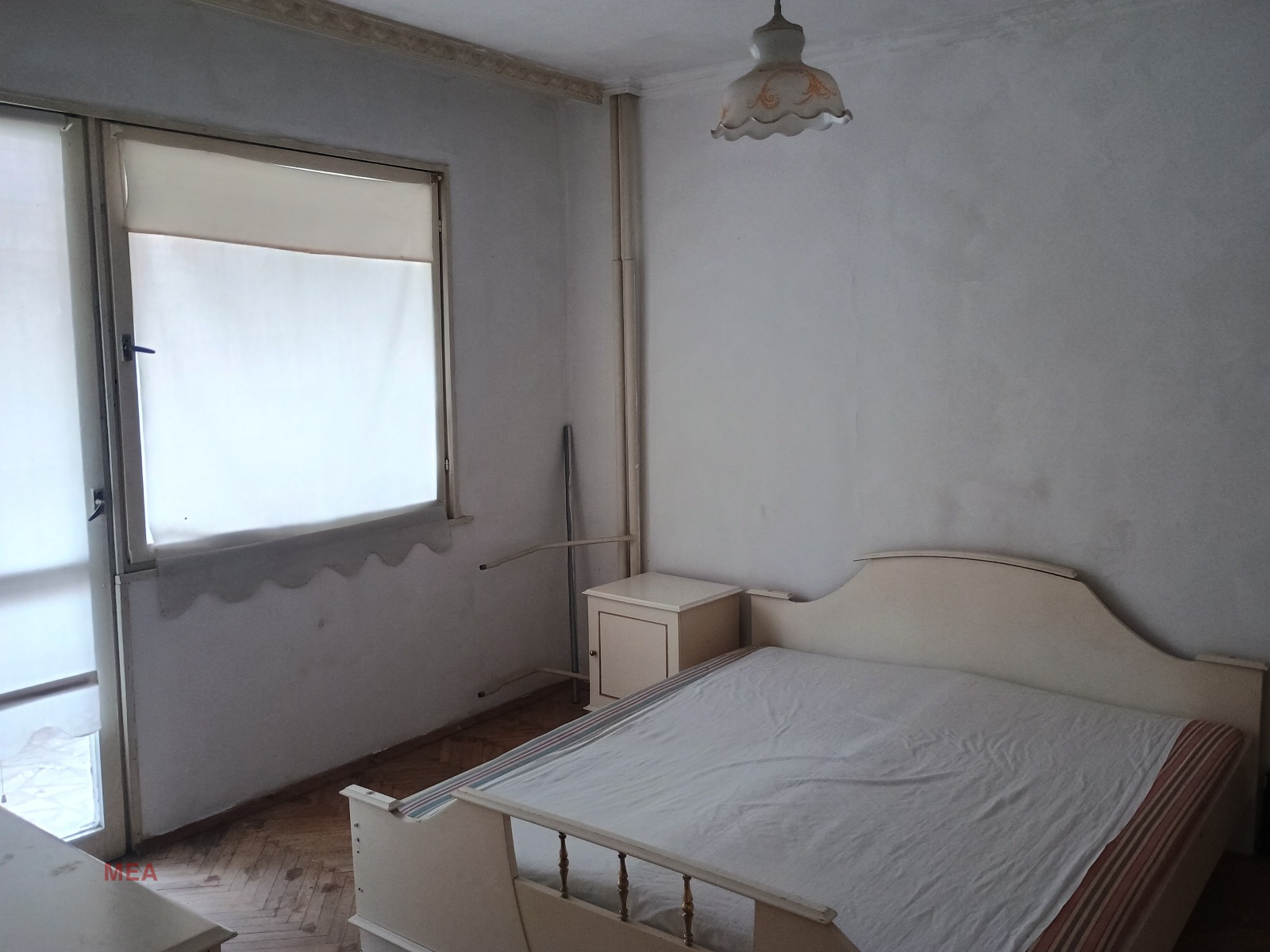 Жилището е БЕЗ ПОДОБРЕНИЯ. Етажа е първи,над гаражи, жилищния блок е на 8 етажа с анасньор.Свободно е паркирането, навсякъде около сградата.