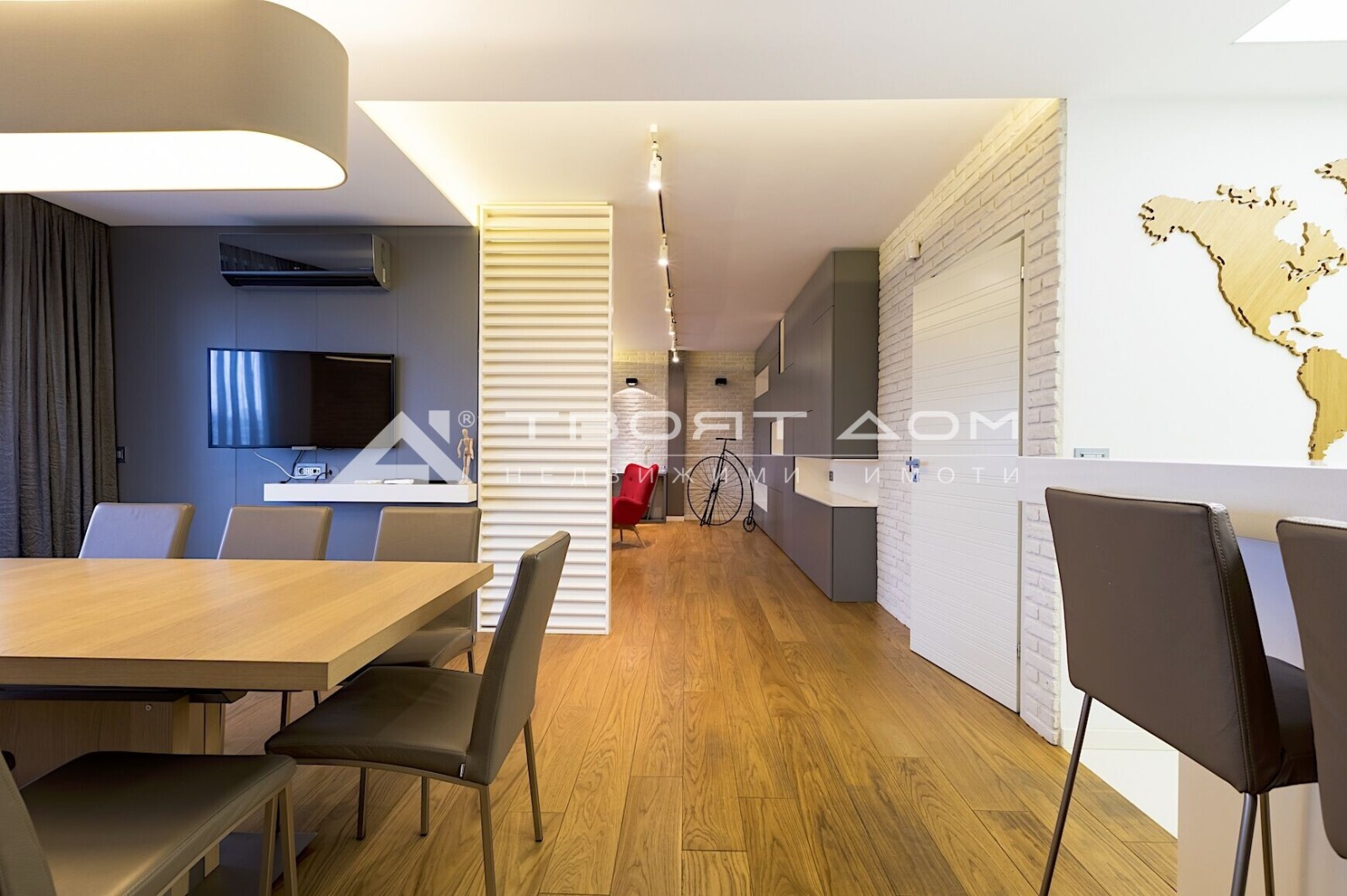 Агенция за недвижими имоти Твоят Дом , отдава под наем просторен, тристаен апартамент, с безупречен дизайн и висок клас мебели със съвременен визия и функционалност, изпълнени по индивидуален проект на фирма 'Chuchuline'.