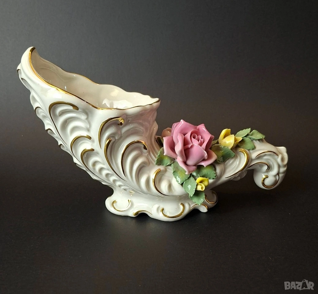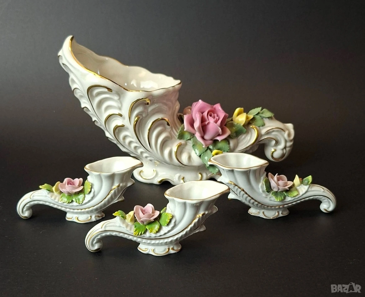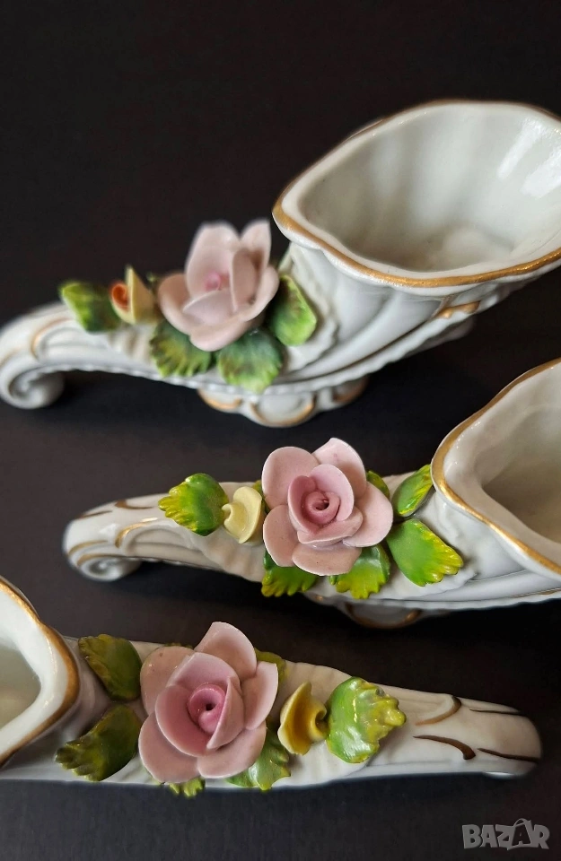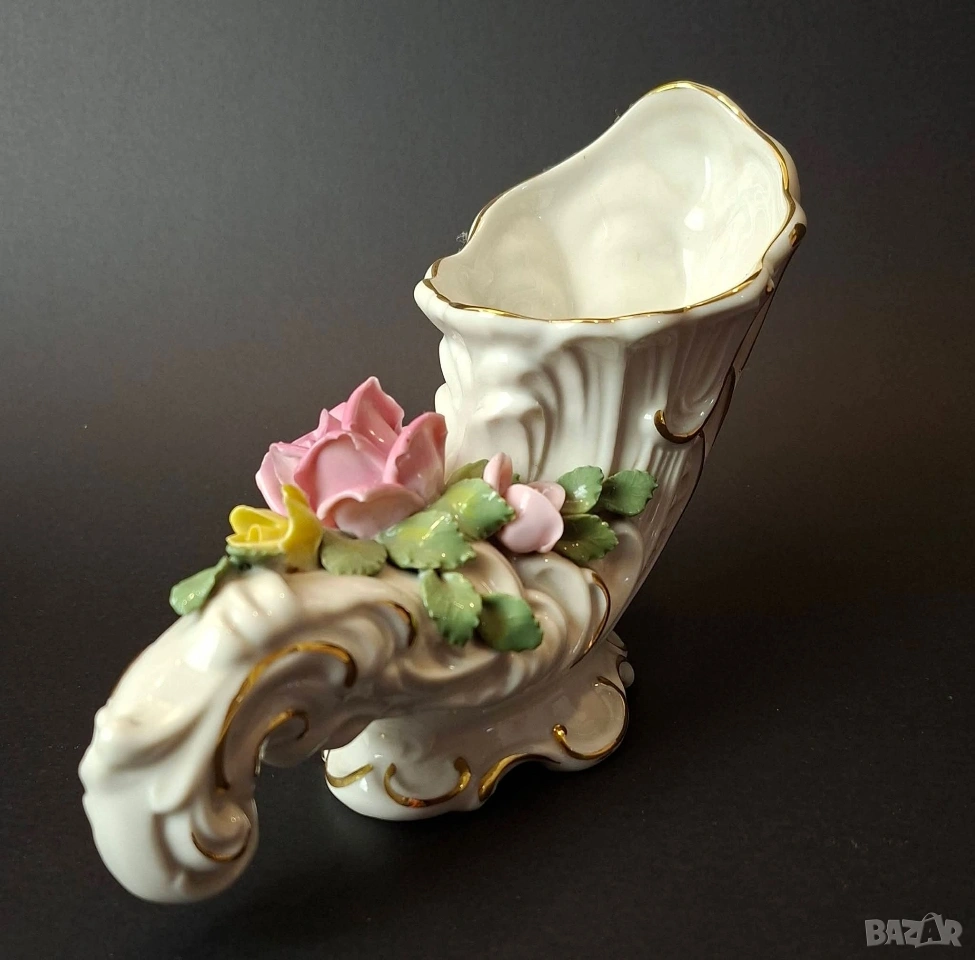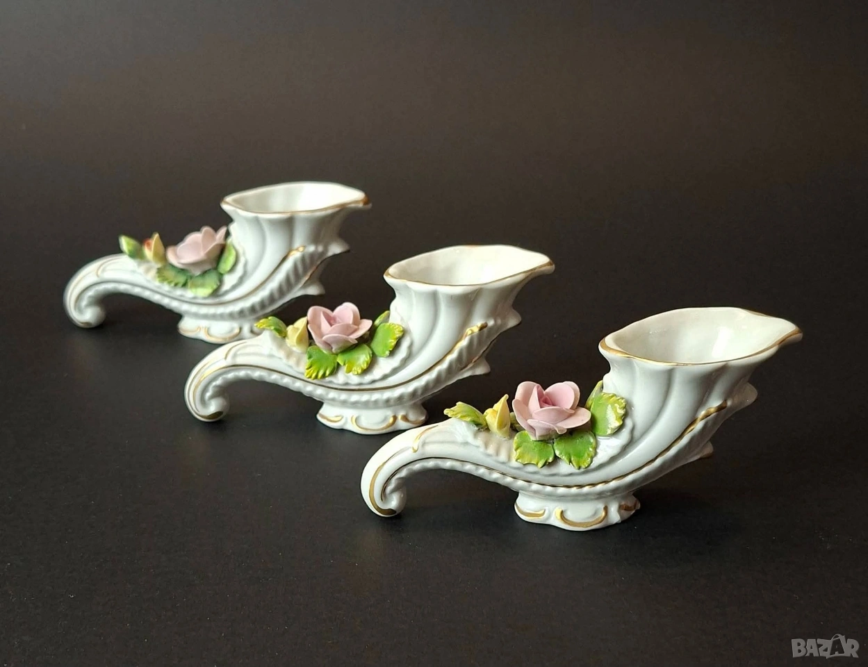Винтидж порцеланов комплект декоративни вази тип "рог на изобилието" - Sandizell, Dresden