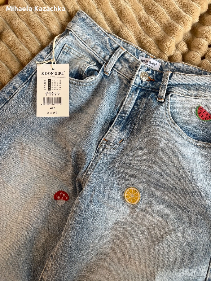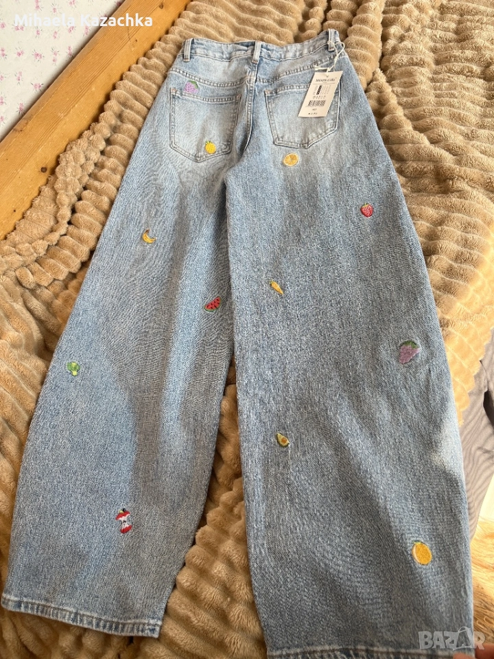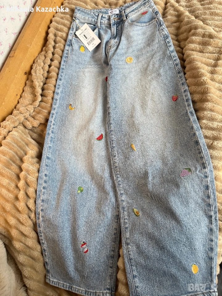Дънки с бродерия 🍌🍊🍎🍑🥑🍒🍉чисто нови нейзползвани размер Xc лека еластичност с етикет → Обява 53720900