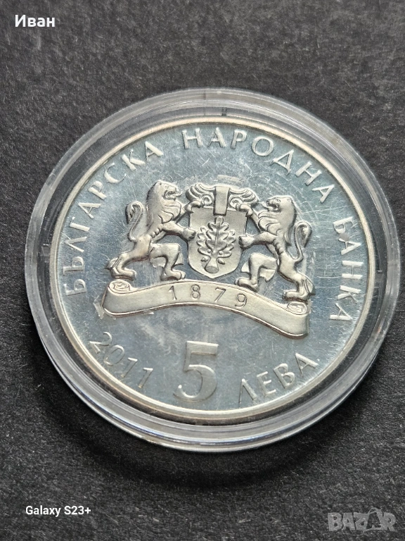 Продавам сребърна монета 5 лева от 2011 година,Косе босе → Обява 53720940