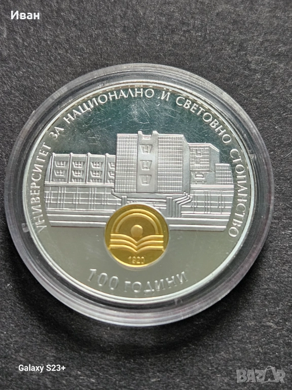 Продавам сребърна монета 10 лева от 2020 година,100 години УНСС → Обява 53721039