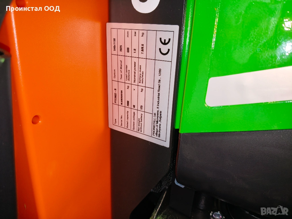 Ел. палетна количка може да се види и тества в гр. София, с. Мировяне. Включени са 2 години гаранция или 2000 мото часа и мобилен сервиз. Цената е без ДДС.