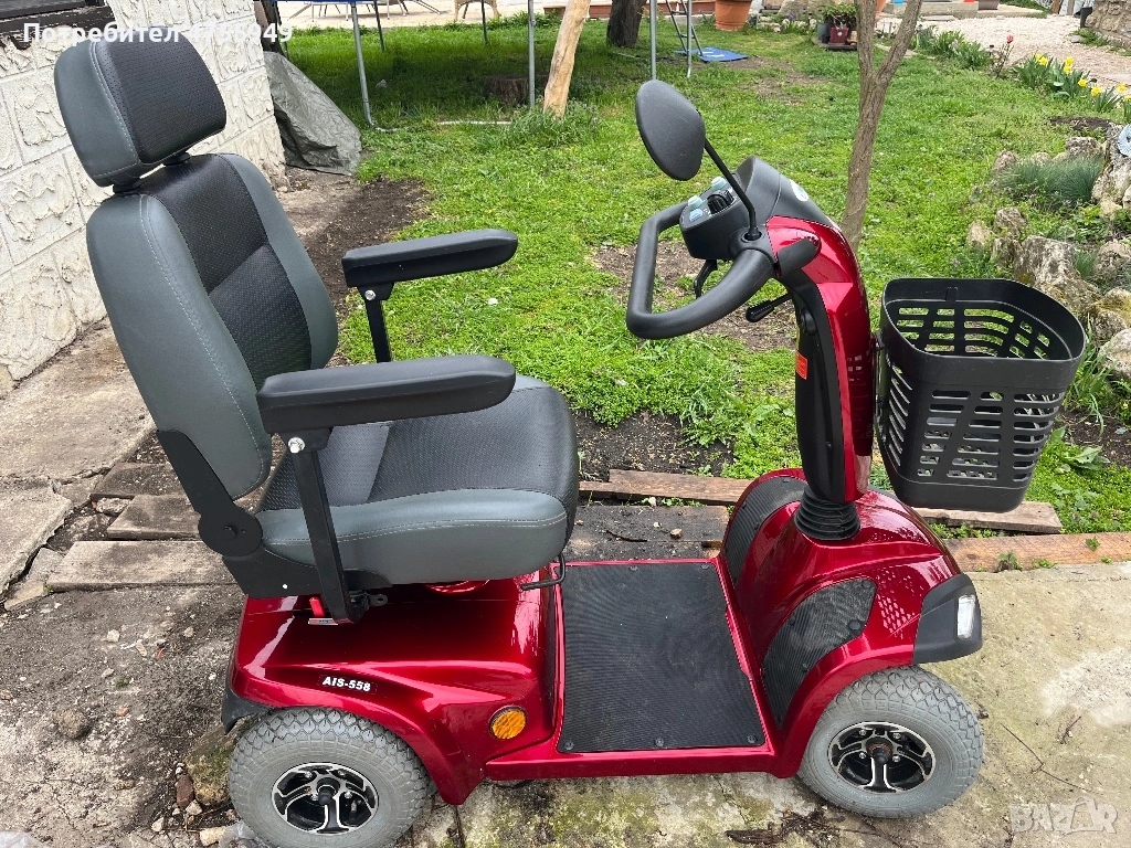 AIS-558 е оборудван с електронна функция за намаляване на скоростта, която се включва автоматично при кръгли завои, за да гарантира безопастни, удобни маневри. Интелигентна електроника предлага визуално и аудио предупреждение, когато батериите имат нужда от зареждане. Лост за двуетапно освобождаване на движението на скутера предотвратява движението на скутера на празен ход. С използването само на качествени компоненти, ние сме направили AIS-558 надежден и лесен за обслужване. Просто махнете горния капак и имате достъп до акумулаторите, електрониката, двигателя и кабелите. Електрониката и двигателят са защитени от корозия и вода (защита срещу напръскване), която гарантира жизненоважната работа на скутера от замърсяване с вода и предотвратяване на ненужна неизправност. Ергономичен волан. Предотвратява умора в ръцете по време на дълги пътувания.