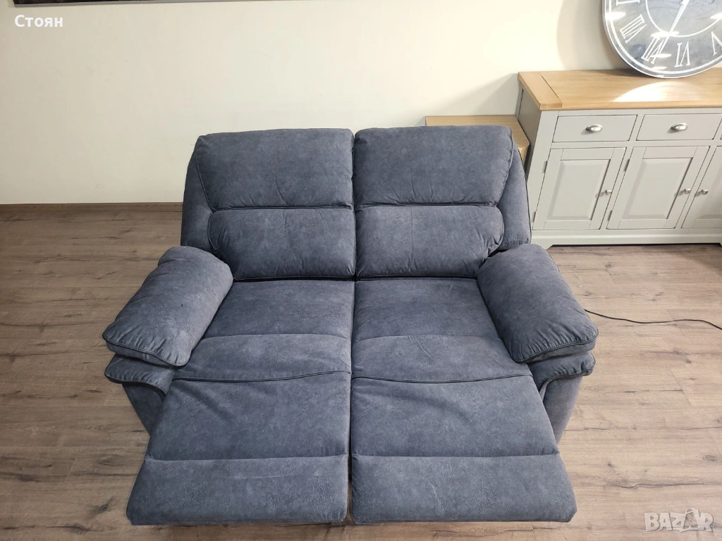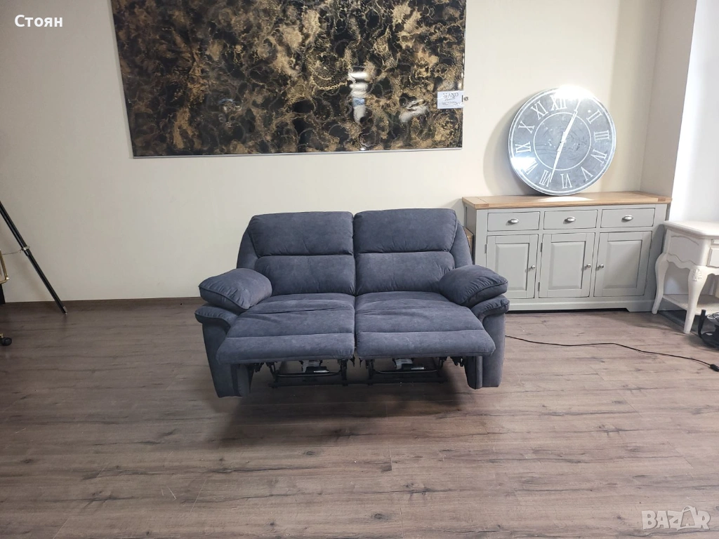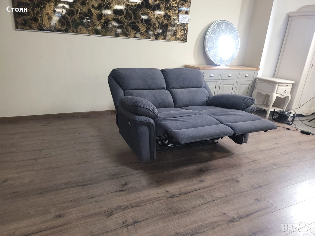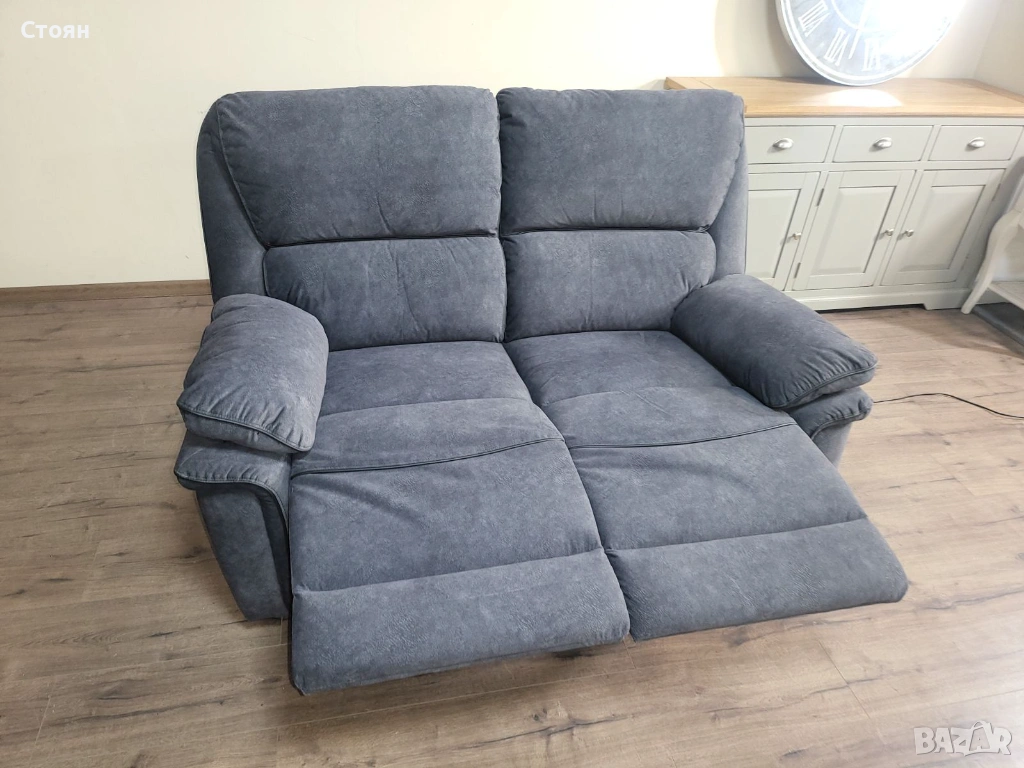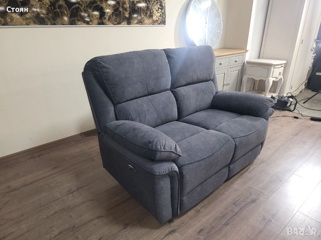 Сив диван от плат двойка с електрически релаксиращ механизъм → Обява 53721318